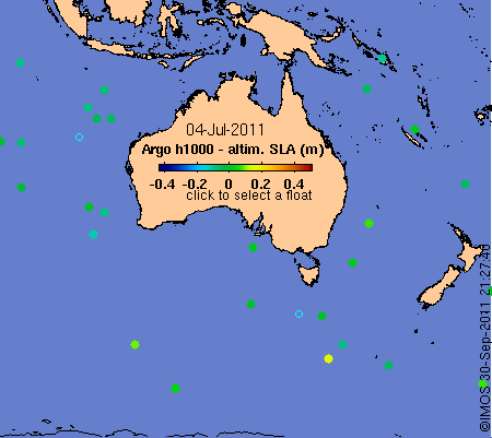 Click on an Argo float on the map above or select one by [WMO number] to see T & S profiles.