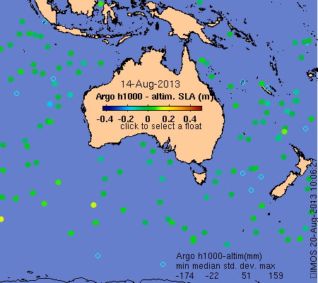 Click on an Argo float on the map above or select one by [WMO number] to see T & S profiles.