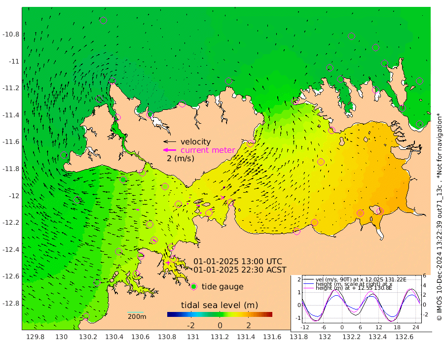 23cm/s 80T +4cm/s rms + 6cm/s 51T. Darwin_C1 52m 38cm/s 88T +4cm/s rms + 7cm/s -161T. Darwin_CW1 22m 20cm/s 74T +4cm/s rms + 8cm/s 61T. Darwin_CW2 34m 41cm/s 39T +3cm/s rms + 9cm/s 98T. Darwin_CW3 22m 55cm/s 93T +5cm/s rms + 7cm/s 88T. Darwin_C3 56m 11cm/s 75T +2cm/s rms + 9cm/s -126T. Darwin_CTbW 22m 43cm/s -80T +1cm/s rms + 1cm/s -47T. DARBGF 30m 55cm/s -52T +4cm/s rms + 3cm/s 80T. NRSDAR 19m -20cm Goodrich Bank 34cm Point Jenny 31cm Native Point 40cm Fish Reef 46cm Tapa Bay -5cm Point Fawcett (Offshore) 60cm Burge Point 19cm Munkunuwa 22cm Beagle A 49cm Parsons Bank 57cm Fenton Patches 69cm Hancox Shoal Area 69cm Nightcliff 83cm Darwin 68cm Charles Point Patches 108cm Glyde Point 169cm Chambers Bay 173cm Point Stuart 113cm Cape Hotham 152cm Christine Reef 195cm West Alligator Head 227cm East Field Island 125cm Two Hills Bay 128cm Camp Point 46cm Medina Inlet South -19cm South Barlow Point -20cm St. Asaph Bay -28cm Cape Van Dieman -26cm Snake Bay -16cm Cache Point -3cm Point Jahleel (Off) 35cm Cape Don -6cm Port Essington -11cm Smith Point - West -10cm NW Peacock Island -9cm North Of Jones Shoal -4cm Peacock Island -7cm Point David -15cm D'urville Point -5cm Copeland Island 1cm One Tree Point