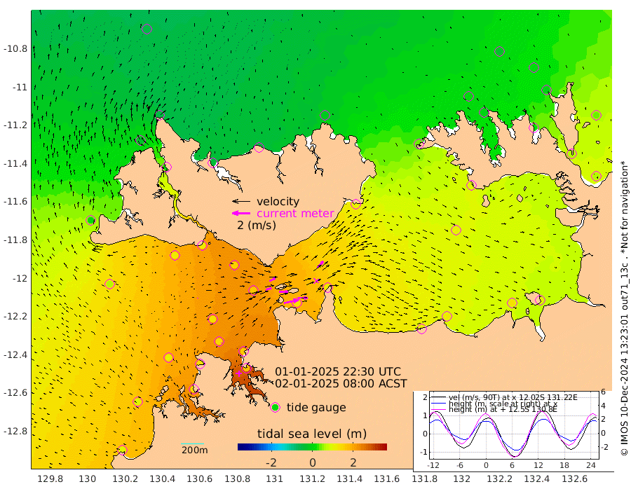 160cm/s 78T +4cm/s rms + 6cm/s 51T. Darwin_C1 52m 108cm/s 92T +4cm/s rms + 7cm/s -161T. Darwin_CW1 22m 66cm/s 72T +4cm/s rms + 8cm/s 61T. Darwin_CW2 34m 103cm/s 42T +3cm/s rms + 9cm/s 98T. Darwin_CW3 22m 103cm/s 89T +5cm/s rms + 7cm/s 88T. Darwin_C3 56m 72cm/s 65T +2cm/s rms + 9cm/s -126T. Darwin_CTbW 22m 4cm/s -1T +1cm/s rms + 1cm/s -47T. DARBGF 30m 9cm/s 0T +4cm/s rms + 3cm/s 80T. NRSDAR 19m -54cm Goodrich Bank 98cm Point Jenny 98cm Native Point 108cm Fish Reef 132cm Tapa Bay 7cm Point Fawcett (Offshore) 140cm Burge Point 116cm Munkunuwa 66cm Beagle A 157cm Parsons Bank 132cm Fenton Patches 162cm Hancox Shoal Area 159cm Nightcliff 174cm Darwin 143cm Charles Point Patches 135cm Glyde Point 118cm Chambers Bay 121cm Point Stuart 122cm Cape Hotham 103cm Christine Reef 129cm West Alligator Head 122cm East Field Island 99cm Two Hills Bay 101cm Camp Point 122cm Medina Inlet South 4cm South Barlow Point -28cm St. Asaph Bay -50cm Cape Van Dieman -39cm Snake Bay -47cm Cache Point -20cm Point Jahleel (Off) 36cm Cape Don 0cm Port Essington -1cm Smith Point - West 4cm NW Peacock Island -24cm North Of Jones Shoal -4cm Peacock Island 57cm Point David 13cm D'urville Point 63cm Copeland Island 42cm One Tree Point