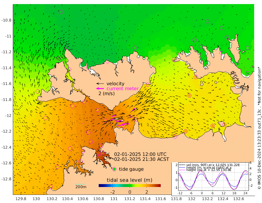 185cm/s 79T +4cm/s rms + 6cm/s 51T. Darwin_C1 52m 138cm/s 93T +4cm/s rms + 7cm/s -161T. Darwin_CW1 22m 108cm/s 71T +4cm/s rms + 8cm/s 61T. Darwin_CW2 34m 114cm/s 47T +3cm/s rms + 9cm/s 98T. Darwin_CW3 22m 169cm/s 90T +5cm/s rms + 7cm/s 88T. Darwin_C3 56m 94cm/s 66T +2cm/s rms + 9cm/s -126T. Darwin_CTbW 22m 11cm/s 0T +1cm/s rms + 1cm/s -47T. DARBGF 30m 22cm/s -32T +4cm/s rms + 3cm/s 80T. NRSDAR 19m -14cm Goodrich Bank 178cm Point Jenny 176cm Native Point 186cm Fish Reef 203cm Tapa Bay 73cm Point Fawcett (Offshore) 227cm Burge Point 182cm Munkunuwa 150cm Beagle A 214cm Parsons Bank 218cm Fenton Patches 222cm Hancox Shoal Area 240cm Nightcliff 249cm Darwin 218cm Charles Point Patches 202cm Glyde Point 203cm Chambers Bay 192cm Point Stuart 179cm Cape Hotham 191cm Christine Reef 213cm West Alligator Head 216cm East Field Island 160cm Two Hills Bay 164cm Camp Point 200cm Medina Inlet South 54cm South Barlow Point 28cm St. Asaph Bay -15cm Cape Van Dieman -9cm Snake Bay -6cm Cache Point 16cm Point Jahleel (Off) 74cm Cape Don 14cm Port Essington 15cm Smith Point - West 9cm NW Peacock Island -1cm North Of Jones Shoal 0cm Peacock Island 18cm Point David 11cm D'urville Point 20cm Copeland Island 23cm One Tree Point