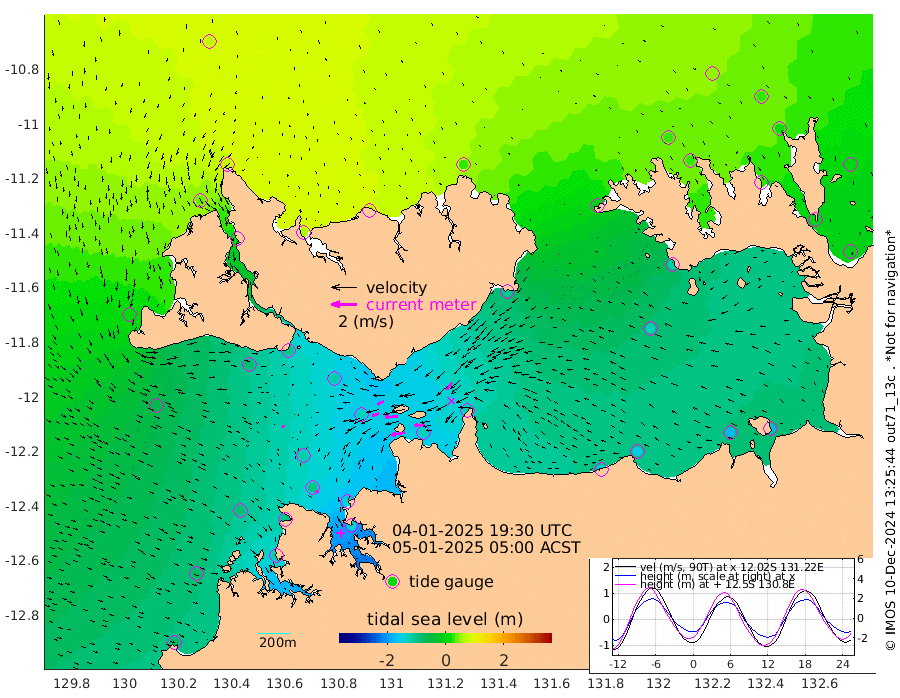 109cm/s -100T +4cm/s rms + 6cm/s 51T. Darwin_C1 52m 78cm/s -92T +4cm/s rms + 7cm/s -161T. Darwin_CW1 22m 53cm/s -106T +4cm/s rms + 8cm/s 61T. Darwin_CW2 34m 72cm/s -137T +3cm/s rms + 9cm/s 98T. Darwin_CW3 22m 98cm/s -91T +5cm/s rms + 7cm/s 88T. Darwin_C3 56m 56cm/s -116T +2cm/s rms + 9cm/s -126T. Darwin_CTbW 22m 16cm/s 114T +1cm/s rms + 1cm/s -47T. DARBGF 30m 22cm/s 145T +4cm/s rms + 3cm/s 80T. NRSDAR 19m 68cm Goodrich Bank -78cm Point Jenny -75cm Native Point -87cm Fish Reef -101cm Tapa Bay 11cm Point Fawcett (Offshore) -117cm Burge Point -90cm Munkunuwa -57cm Beagle A -123cm Parsons Bank -118cm Fenton Patches -132cm Hancox Shoal Area -140cm Nightcliff -138cm Darwin -101cm Charles Point Patches -126cm Glyde Point -150cm Chambers Bay -150cm Point Stuart -124cm Cape Hotham -134cm Christine Reef -170cm West Alligator Head -177cm East Field Island -113cm Two Hills Bay -103cm Camp Point -93cm Medina Inlet South 21cm South Barlow Point 42cm St. Asaph Bay 69cm Cape Van Dieman 63cm Snake Bay 61cm Cache Point 33cm Point Jahleel (Off) -18cm Cape Don 32cm Port Essington 26cm Smith Point - West 28cm NW Peacock Island 47cm North Of Jones Shoal 15cm Peacock Island 2cm Point David 23cm D'urville Point -5cm Copeland Island 8cm One Tree Point