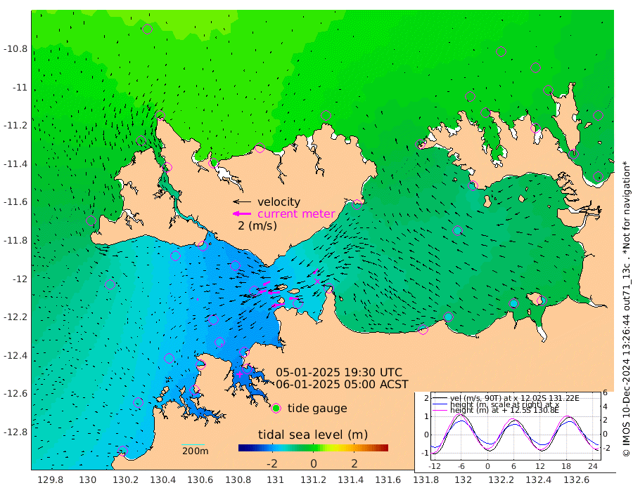 148cm/s -101T +4cm/s rms + 6cm/s 51T. Darwin_C1 52m 105cm/s -91T +4cm/s rms + 7cm/s -161T. Darwin_CW1 22m 79cm/s -106T +4cm/s rms + 8cm/s 61T. Darwin_CW2 34m 77cm/s -136T +3cm/s rms + 9cm/s 98T. Darwin_CW3 22m 126cm/s -91T +5cm/s rms + 7cm/s 88T. Darwin_C3 56m 83cm/s -115T +2cm/s rms + 9cm/s -126T. Darwin_CTbW 22m 14cm/s -111T +1cm/s rms + 1cm/s -47T. DARBGF 30m 11cm/s -107T +4cm/s rms + 3cm/s 80T. NRSDAR 19m 29cm Goodrich Bank -138cm Point Jenny -136cm Native Point -149cm Fish Reef -162cm Tapa Bay -46cm Point Fawcett (Offshore) -176cm Burge Point -150cm Munkunuwa -117cm Beagle A -181cm Parsons Bank -175cm Fenton Patches -183cm Hancox Shoal Area -191cm Nightcliff -194cm Darwin -163cm Charles Point Patches -152cm Glyde Point -142cm Chambers Bay -136cm Point Stuart -139cm Cape Hotham -129cm Christine Reef -150cm West Alligator Head -141cm East Field Island -118cm Two Hills Bay -106cm Camp Point -153cm Medina Inlet South -35cm South Barlow Point -7cm St. Asaph Bay 27cm Cape Van Dieman 20cm Snake Bay 20cm Cache Point -4cm Point Jahleel (Off) -50cm Cape Don -8cm Port Essington -15cm Smith Point - West -12cm NW Peacock Island 11cm North Of Jones Shoal 1cm Peacock Island -35cm Point David -19cm D'urville Point -40cm Copeland Island -29cm One Tree Point