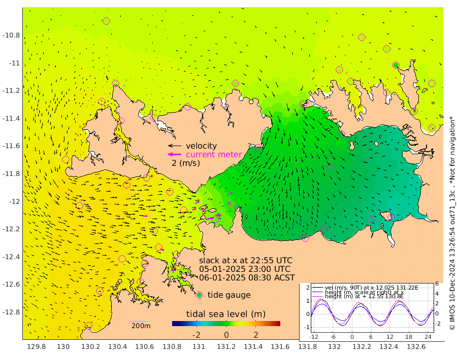 121cm/s 78T +4cm/s rms + 6cm/s 51T. Darwin_C1 52m 85cm/s 87T +4cm/s rms + 7cm/s -161T. Darwin_CW1 22m 55cm/s 74T +4cm/s rms + 8cm/s 61T. Darwin_CW2 34m 36cm/s 59T +3cm/s rms + 9cm/s 98T. Darwin_CW3 22m 62cm/s 87T +5cm/s rms + 7cm/s 88T. Darwin_C3 56m 72cm/s 63T +2cm/s rms + 9cm/s -126T. Darwin_CTbW 22m 58cm/s 92T +1cm/s rms + 1cm/s -47T. DARBGF 30m 57cm/s 119T +4cm/s rms + 3cm/s 80T. NRSDAR 19m 57cm Goodrich Bank 113cm Point Jenny 114cm Native Point 114cm Fish Reef 120cm Tapa Bay 102cm Point Fawcett (Offshore) 113cm Burge Point 131cm Munkunuwa 98cm Beagle A 122cm Parsons Bank 100cm Fenton Patches 102cm Hancox Shoal Area 100cm Nightcliff 114cm Darwin 124cm Charles Point Patches 35cm Glyde Point -49cm Chambers Bay -64cm Point Stuart 7cm Cape Hotham -43cm Christine Reef -82cm West Alligator Head -125cm East Field Island -20cm Two Hills Bay -20cm Camp Point 121cm Medina Inlet South 102cm South Barlow Point 85cm St. Asaph Bay 66cm Cape Van Dieman 68cm Snake Bay 59cm Cache Point 52cm Point Jahleel (Off) 49cm Cape Don 67cm Port Essington 67cm Smith Point - West 64cm NW Peacock Island 57cm North Of Jones Shoal 22cm Peacock Island 66cm Point David 70cm D'urville Point 63cm Copeland Island 63cm One Tree Point