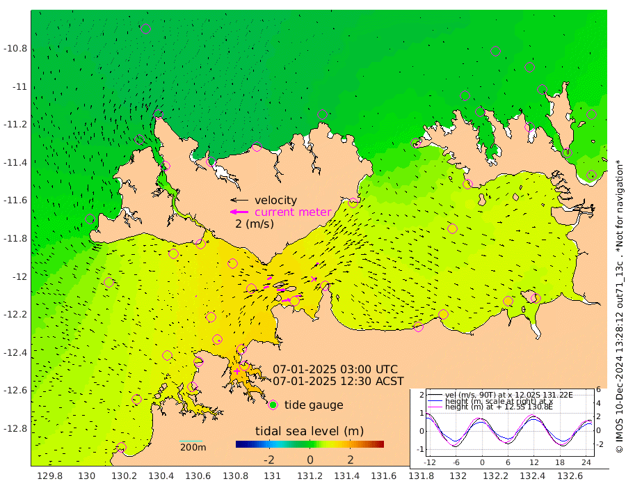 99cm/s 79T +4cm/s rms + 6cm/s 51T. Darwin_C1 52m 66cm/s 91T +4cm/s rms + 7cm/s -161T. Darwin_CW1 22m 58cm/s 71T +4cm/s rms + 8cm/s 61T. Darwin_CW2 34m 57cm/s 46T +3cm/s rms + 9cm/s 98T. Darwin_CW3 22m 93cm/s 89T +5cm/s rms + 7cm/s 88T. Darwin_C3 56m 54cm/s 65T +2cm/s rms + 9cm/s -126T. Darwin_CTbW 22m 7cm/s -45T +1cm/s rms + 1cm/s -47T. DARBGF 30m 18cm/s -39T +4cm/s rms + 3cm/s 80T. NRSDAR 19m -44cm Goodrich Bank 89cm Point Jenny 84cm Native Point 90cm Fish Reef 105cm Tapa Bay 14cm Point Fawcett (Offshore) 111cm Burge Point 87cm Munkunuwa 57cm Beagle A 121cm Parsons Bank 105cm Fenton Patches 131cm Hancox Shoal Area 127cm Nightcliff 130cm Darwin 108cm Charles Point Patches 116cm Glyde Point 136cm Chambers Bay 133cm Point Stuart 114cm Cape Hotham 123cm Christine Reef 146cm West Alligator Head 145cm East Field Island 106cm Two Hills Bay 95cm Camp Point 92cm Medina Inlet South -4cm South Barlow Point -20cm St. Asaph Bay -42cm Cape Van Dieman -42cm Snake Bay -32cm Cache Point -12cm Point Jahleel (Off) 39cm Cape Don 1cm Port Essington 5cm Smith Point - West 5cm NW Peacock Island -16cm North Of Jones Shoal -3cm Peacock Island 35cm Point David 11cm D'urville Point 42cm Copeland Island 28cm One Tree Point