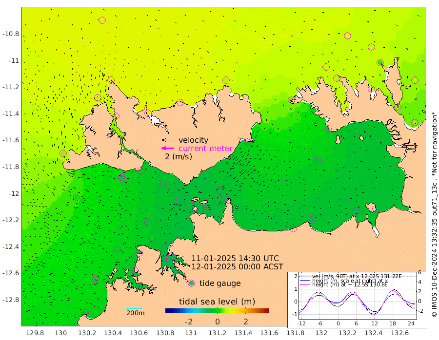 67cm/s -101T +4cm/s rms + 6cm/s 51T. Darwin_C1 52m 73cm/s -91T +4cm/s rms + 7cm/s -161T. Darwin_CW1 22m 21cm/s -109T +4cm/s rms + 8cm/s 61T. Darwin_CW2 34m 43cm/s -136T +3cm/s rms + 9cm/s 98T. Darwin_CW3 22m 36cm/s -91T +5cm/s rms + 7cm/s 88T. Darwin_C3 56m 30cm/s -115T +2cm/s rms + 9cm/s -126T. Darwin_CTbW 22m 13cm/s 102T +1cm/s rms + 1cm/s -47T. DARBGF 30m 13cm/s 139T +4cm/s rms + 3cm/s 80T. NRSDAR 19m 86cm Goodrich Bank -7cm Point Jenny -5cm Native Point -10cm Fish Reef -19cm Tapa Bay 51cm Point Fawcett (Offshore) -28cm Burge Point -23cm Munkunuwa 12cm Beagle A -28cm Parsons Bank -25cm Fenton Patches -33cm Hancox Shoal Area -35cm Nightcliff -30cm Darwin -8cm Charles Point Patches -32cm Glyde Point -47cm Chambers Bay -55cm Point Stuart -32cm Cape Hotham -42cm Christine Reef -68cm West Alligator Head -73cm East Field Island -24cm Two Hills Bay -24cm Camp Point -11cm Medina Inlet South 61cm South Barlow Point 69cm St. Asaph Bay 85cm Cape Van Dieman 89cm Snake Bay 84cm Cache Point 67cm Point Jahleel (Off) 37cm Cape Don 68cm Port Essington 67cm Smith Point - West 70cm NW Peacock Island 80cm North Of Jones Shoal 27cm Peacock Island 52cm Point David 67cm D'urville Point 47cm Copeland Island 59cm One Tree Point