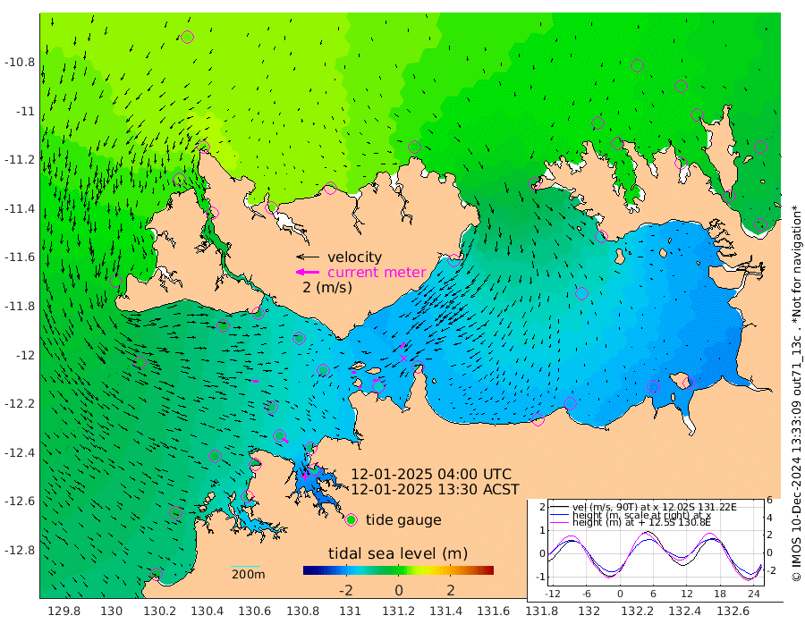 31cm/s -101T +4cm/s rms + 6cm/s 51T. Darwin_C1 52m 58cm/s -94T +4cm/s rms + 7cm/s -161T. Darwin_CW1 22m 3cm/s -98T +4cm/s rms + 8cm/s 61T. Darwin_CW2 34m 61cm/s -145T +3cm/s rms + 9cm/s 98T. Darwin_CW3 22m 36cm/s -87T +5cm/s rms + 7cm/s 88T. Darwin_C3 56m 1cm/s -95T +2cm/s rms + 9cm/s -126T. Darwin_CTbW 22m 53cm/s 98T +1cm/s rms + 1cm/s -47T. DARBGF 30m 59cm/s 126T +4cm/s rms + 3cm/s 80T. NRSDAR 19m 37cm Goodrich Bank -42cm Point Jenny -41cm Native Point -51cm Fish Reef -60cm Tapa Bay 22cm Point Fawcett (Offshore) -89cm Burge Point -30cm Munkunuwa -32cm Beagle A -79cm Parsons Bank -83cm Fenton Patches -94cm Hancox Shoal Area -87cm Nightcliff -110cm Darwin -86cm Charles Point Patches -129cm Glyde Point -169cm Chambers Bay -186cm Point Stuart -134cm Cape Hotham -158cm Christine Reef -204cm West Alligator Head -236cm East Field Island -134cm Two Hills Bay -145cm Camp Point -56cm Medina Inlet South 26cm South Barlow Point 40cm St. Asaph Bay 41cm Cape Van Dieman 36cm Snake Bay 30cm Cache Point 11cm Point Jahleel (Off) -40cm Cape Don 0cm Port Essington 9cm Smith Point - West 0cm NW Peacock Island 18cm North Of Jones Shoal 4cm Peacock Island -34cm Point David 1cm D'urville Point -37cm Copeland Island -29cm One Tree Point