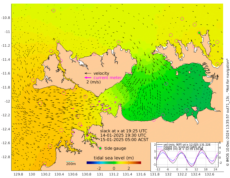 113cm/s 78T +4cm/s rms + 6cm/s 51T. Darwin_C1 52m 78cm/s 84T +4cm/s rms + 7cm/s -161T. Darwin_CW1 22m 39cm/s 78T +4cm/s rms + 8cm/s 61T. Darwin_CW2 34m 32cm/s 57T +3cm/s rms + 9cm/s 98T. Darwin_CW3 22m 44cm/s 88T +5cm/s rms + 7cm/s 88T. Darwin_C3 56m 70cm/s 63T +2cm/s rms + 9cm/s -126T. Darwin_CTbW 22m 54cm/s 92T +1cm/s rms + 1cm/s -47T. DARBGF 30m 53cm/s 120T +4cm/s rms + 3cm/s 80T. NRSDAR 19m 64cm Goodrich Bank 121cm Point Jenny 122cm Native Point 129cm Fish Reef 127cm Tapa Bay 113cm Point Fawcett (Offshore) 122cm Burge Point 124cm Munkunuwa 114cm Beagle A 125cm Parsons Bank 116cm Fenton Patches 109cm Hancox Shoal Area 118cm Nightcliff 128cm Darwin 136cm Charles Point Patches 61cm Glyde Point -15cm Chambers Bay -23cm Point Stuart 38cm Cape Hotham -14cm Christine Reef -39cm West Alligator Head -73cm East Field Island 14cm Two Hills Bay 14cm Camp Point 130cm Medina Inlet South 108cm South Barlow Point 90cm St. Asaph Bay 73cm Cape Van Dieman 80cm Snake Bay 70cm Cache Point 65cm Point Jahleel (Off) 69cm Cape Don 82cm Port Essington 80cm Smith Point - West 79cm NW Peacock Island 75cm North Of Jones Shoal 29cm Peacock Island 89cm Point David 86cm D'urville Point 87cm Copeland Island 89cm One Tree Point
