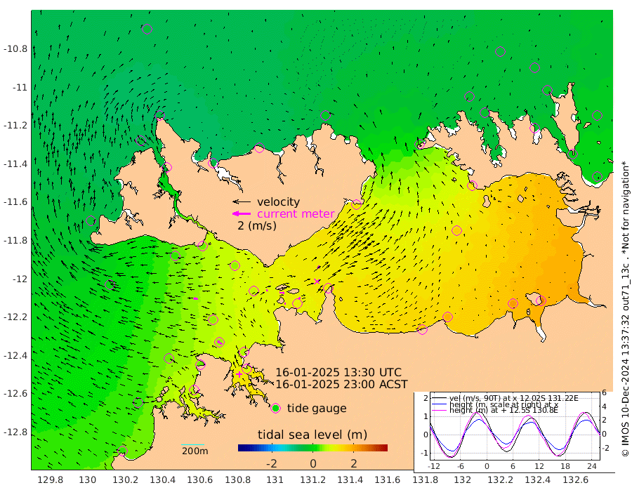 11cm/s 82T +4cm/s rms + 6cm/s 51T. Darwin_C1 52m 20cm/s 87T +4cm/s rms + 7cm/s -161T. Darwin_CW1 22m 15cm/s 79T +4cm/s rms + 8cm/s 61T. Darwin_CW2 34m 35cm/s 35T +3cm/s rms + 9cm/s 98T. Darwin_CW3 22m 53cm/s 93T +5cm/s rms + 7cm/s 88T. Darwin_C3 56m 2cm/s 133T +2cm/s rms + 9cm/s -126T. Darwin_CTbW 22m 49cm/s -81T +1cm/s rms + 1cm/s -47T. DARBGF 30m 57cm/s -51T +4cm/s rms + 3cm/s 80T. NRSDAR 19m -42cm Goodrich Bank 27cm Point Jenny 26cm Native Point 35cm Fish Reef 42cm Tapa Bay -26cm Point Fawcett (Offshore) 64cm Burge Point 24cm Munkunuwa 11cm Beagle A 55cm Parsons Bank 54cm Fenton Patches 68cm Hancox Shoal Area 60cm Nightcliff 82cm Darwin 56cm Charles Point Patches 110cm Glyde Point 170cm Chambers Bay 186cm Point Stuart 119cm Cape Hotham 153cm Christine Reef 211cm West Alligator Head 242cm East Field Island 130cm Two Hills Bay 127cm Camp Point 40cm Medina Inlet South -39cm South Barlow Point -44cm St. Asaph Bay -49cm Cape Van Dieman -46cm Snake Bay -38cm Cache Point -20cm Point Jahleel (Off) 23cm Cape Don -23cm Port Essington -29cm Smith Point - West -27cm NW Peacock Island -36cm North Of Jones Shoal -13cm Peacock Island -11cm Point David -30cm D'urville Point -9cm Copeland Island -10cm One Tree Point