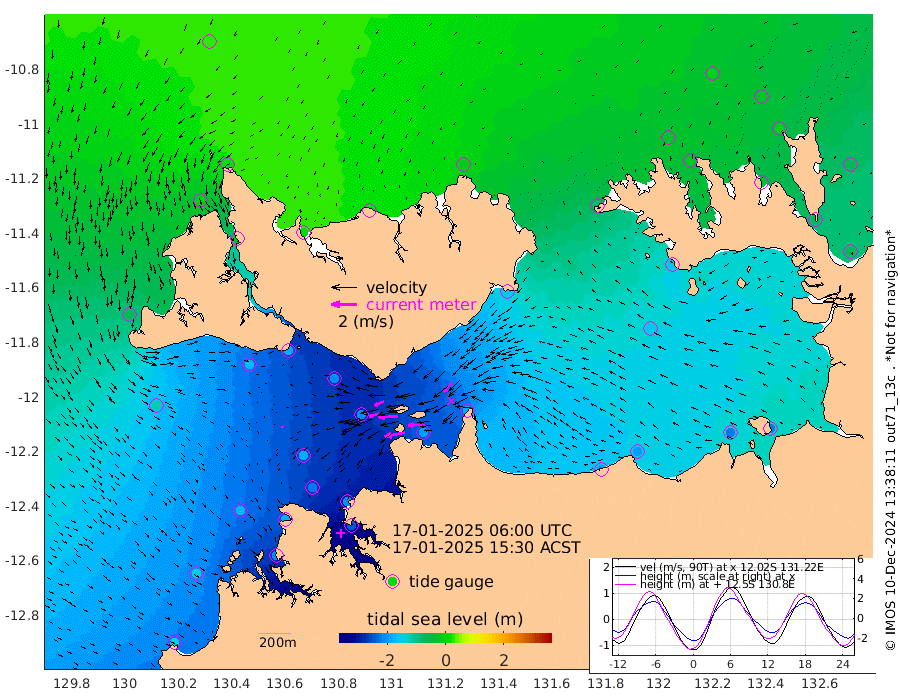 163cm/s -101T +4cm/s rms + 6cm/s 51T. Darwin_C1 52m 131cm/s -92T +4cm/s rms + 7cm/s -161T. Darwin_CW1 22m 81cm/s -106T +4cm/s rms + 8cm/s 61T. Darwin_CW2 34m 99cm/s -136T +3cm/s rms + 9cm/s 98T. Darwin_CW3 22m 151cm/s -90T +5cm/s rms + 7cm/s 88T. Darwin_C3 56m 80cm/s -116T +2cm/s rms + 9cm/s -126T. Darwin_CTbW 22m 10cm/s 149T +1cm/s rms + 1cm/s -47T. DARBGF 30m 20cm/s 153T +4cm/s rms + 3cm/s 80T. NRSDAR 19m 24cm Goodrich Bank -153cm Point Jenny -152cm Native Point -175cm Fish Reef -188cm Tapa Bay -63cm Point Fawcett (Offshore) -206cm Burge Point -171cm Munkunuwa -114cm Beagle A -212cm Parsons Bank -185cm Fenton Patches -212cm Hancox Shoal Area -209cm Nightcliff -247cm Darwin -214cm Charles Point Patches -200cm Glyde Point -194cm Chambers Bay -202cm Point Stuart -186cm Cape Hotham -166cm Christine Reef -218cm West Alligator Head -216cm East Field Island -168cm Two Hills Bay -162cm Camp Point -189cm Medina Inlet South -42cm South Barlow Point -10cm St. Asaph Bay 21cm Cape Van Dieman 9cm Snake Bay 13cm Cache Point -13cm Point Jahleel (Off) -81cm Cape Don -30cm Port Essington -22cm Smith Point - West -23cm NW Peacock Island -5cm North Of Jones Shoal -5cm Peacock Island -64cm Point David -28cm D'urville Point -66cm Copeland Island -61cm One Tree Point