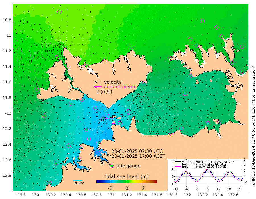 98cm/s -101T +4cm/s rms + 6cm/s 51T. Darwin_C1 52m 75cm/s -91T +4cm/s rms + 7cm/s -161T. Darwin_CW1 22m 61cm/s -106T +4cm/s rms + 8cm/s 61T. Darwin_CW2 34m 55cm/s -135T +3cm/s rms + 9cm/s 98T. Darwin_CW3 22m 111cm/s -91T +5cm/s rms + 7cm/s 88T. Darwin_C3 56m 54cm/s -115T +2cm/s rms + 9cm/s -126T. Darwin_CTbW 22m 6cm/s 145T +1cm/s rms + 1cm/s -47T. DARBGF 30m 13cm/s 160T +4cm/s rms + 3cm/s 80T. NRSDAR 19m 37cm Goodrich Bank -73cm Point Jenny -73cm Native Point -85cm Fish Reef -99cm Tapa Bay -12cm Point Fawcett (Offshore) -100cm Burge Point -89cm Munkunuwa -41cm Beagle A -117cm Parsons Bank -90cm Fenton Patches -120cm Hancox Shoal Area -114cm Nightcliff -137cm Darwin -114cm Charles Point Patches -110cm Glyde Point -113cm Chambers Bay -114cm Point Stuart -99cm Cape Hotham -91cm Christine Reef -124cm West Alligator Head -121cm East Field Island -92cm Two Hills Bay -86cm Camp Point -99cm Medina Inlet South -5cm South Barlow Point 18cm St. Asaph Bay 35cm Cape Van Dieman 26cm Snake Bay 32cm Cache Point 12cm Point Jahleel (Off) -36cm Cape Don -4cm Port Essington 0cm Smith Point - West -1cm NW Peacock Island 15cm North Of Jones Shoal 3cm Peacock Island -33cm Point David -6cm D'urville Point -35cm Copeland Island -29cm One Tree Point