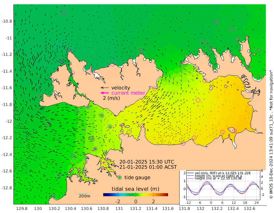 5cm/s -110T +4cm/s rms + 6cm/s 51T. Darwin_C1 52m 7cm/s 81T +4cm/s rms + 7cm/s -161T. Darwin_CW1 22m 7cm/s 73T +4cm/s rms + 8cm/s 61T. Darwin_CW2 34m 16cm/s 39T +3cm/s rms + 9cm/s 98T. Darwin_CW3 22m 38cm/s 93T +5cm/s rms + 7cm/s 88T. Darwin_C3 56m 5cm/s -121T +2cm/s rms + 9cm/s -126T. Darwin_CTbW 22m 43cm/s -83T +1cm/s rms + 1cm/s -47T. DARBGF 30m 53cm/s -53T +4cm/s rms + 3cm/s 80T. NRSDAR 19m -54cm Goodrich Bank -11cm Point Jenny -14cm Native Point 3cm Fish Reef -4cm Tapa Bay -46cm Point Fawcett (Offshore) 14cm Burge Point -17cm Munkunuwa -21cm Beagle A 15cm Parsons Bank 11cm Fenton Patches 24cm Hancox Shoal Area 15cm Nightcliff 35cm Darwin 13cm Charles Point Patches 72cm Glyde Point 128cm Chambers Bay 148cm Point Stuart 83cm Cape Hotham 111cm Christine Reef 168cm West Alligator Head 195cm East Field Island 101cm Two Hills Bay 90cm Camp Point 2cm Medina Inlet South -54cm South Barlow Point -61cm St. Asaph Bay -58cm Cape Van Dieman -55cm Snake Bay -47cm Cache Point -31cm Point Jahleel (Off) 13cm Cape Don -23cm Port Essington -28cm Smith Point - West -25cm NW Peacock Island -35cm North Of Jones Shoal -11cm Peacock Island -6cm Point David -25cm D'urville Point -2cm Copeland Island -3cm One Tree Point