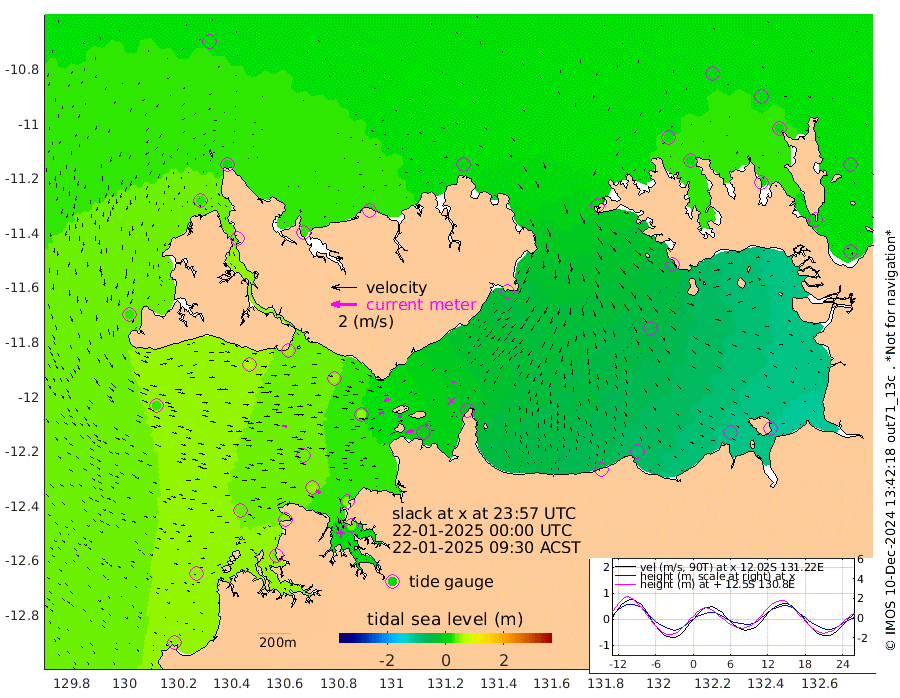 64cm/s 77T +4cm/s rms + 6cm/s 51T. Darwin_C1 52m 24cm/s 87T +4cm/s rms + 7cm/s -161T. Darwin_CW1 22m 37cm/s 72T +4cm/s rms + 8cm/s 61T. Darwin_CW2 34m 17cm/s 69T +3cm/s rms + 9cm/s 98T. Darwin_CW3 22m 32cm/s 84T +5cm/s rms + 7cm/s 88T. Darwin_C3 56m 42cm/s 63T +2cm/s rms + 9cm/s -126T. Darwin_CTbW 22m 35cm/s 93T +1cm/s rms + 1cm/s -47T. DARBGF 30m 37cm/s 117T +4cm/s rms + 3cm/s 80T. NRSDAR 19m 17cm Goodrich Bank 45cm Point Jenny 48cm Native Point 35cm Fish Reef 55cm Tapa Bay 33cm Point Fawcett (Offshore) 38cm Burge Point 64cm Munkunuwa 31cm Beagle A 52cm Parsons Bank 35cm Fenton Patches 46cm Hancox Shoal Area 45cm Nightcliff 43cm Darwin 47cm Charles Point Patches -9cm Glyde Point -58cm Chambers Bay -80cm Point Stuart -30cm Cape Hotham -52cm Christine Reef -92cm West Alligator Head -121cm East Field Island -49cm Two Hills Bay -41cm Camp Point 48cm Medina Inlet South 42cm South Barlow Point 32cm St. Asaph Bay 21cm Cape Van Dieman 23cm Snake Bay 11cm Cache Point 10cm Point Jahleel (Off) 0cm Cape Don 14cm Port Essington 18cm Smith Point - West 15cm NW Peacock Island 10cm North Of Jones Shoal 4cm Peacock Island 17cm Point David 20cm D'urville Point 16cm Copeland Island 10cm One Tree Point