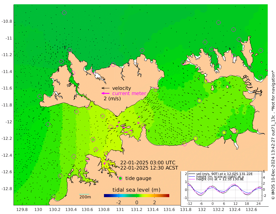 74cm/s 79T +4cm/s rms + 6cm/s 51T. Darwin_C1 52m 49cm/s 91T +4cm/s rms + 7cm/s -161T. Darwin_CW1 22m 47cm/s 71T +4cm/s rms + 8cm/s 61T. Darwin_CW2 34m 36cm/s 49T +3cm/s rms + 9cm/s 98T. Darwin_CW3 22m 76cm/s 88T +5cm/s rms + 7cm/s 88T. Darwin_C3 56m 44cm/s 66T +2cm/s rms + 9cm/s -126T. Darwin_CTbW 22m 3cm/s 7T +1cm/s rms + 1cm/s -47T. DARBGF 30m 10cm/s -31T +4cm/s rms + 3cm/s 80T. NRSDAR 19m -35cm Goodrich Bank 37cm Point Jenny 34cm Native Point 40cm Fish Reef 53cm Tapa Bay 4cm Point Fawcett (Offshore) 40cm Burge Point 42cm Munkunuwa 14cm Beagle A 56cm Parsons Bank 40cm Fenton Patches 68cm Hancox Shoal Area 67cm Nightcliff 65cm Darwin 51cm Charles Point Patches 59cm Glyde Point 78cm Chambers Bay 75cm Point Stuart 61cm Cape Hotham 62cm Christine Reef 85cm West Alligator Head 83cm East Field Island 60cm Two Hills Bay 46cm Camp Point 45cm Medina Inlet South -12cm South Barlow Point -18cm St. Asaph Bay -34cm Cape Van Dieman -31cm Snake Bay -28cm Cache Point -14cm Point Jahleel (Off) 13cm Cape Don -10cm Port Essington -6cm Smith Point - West -8cm NW Peacock Island -13cm North Of Jones Shoal -3cm Peacock Island 10cm Point David -4cm D'urville Point 14cm Copeland Island 8cm One Tree Point