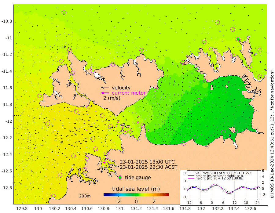 57cm/s 78T +4cm/s rms + 6cm/s 51T. Darwin_C1 52m 14cm/s 85T +4cm/s rms + 7cm/s -161T. Darwin_CW1 22m 39cm/s 74T +4cm/s rms + 8cm/s 61T. Darwin_CW2 34m 22cm/s 52T +3cm/s rms + 9cm/s 98T. Darwin_CW3 22m 48cm/s 89T +5cm/s rms + 7cm/s 88T. Darwin_C3 56m 39cm/s 63T +2cm/s rms + 9cm/s -126T. Darwin_CTbW 22m 25cm/s 87T +1cm/s rms + 1cm/s -47T. DARBGF 30m 22cm/s 114T +4cm/s rms + 3cm/s 80T. NRSDAR 19m 55cm Goodrich Bank 93cm Point Jenny 96cm Native Point 92cm Fish Reef 100cm Tapa Bay 76cm Point Fawcett (Offshore) 108cm Burge Point 99cm Munkunuwa 93cm Beagle A 106cm Parsons Bank 102cm Fenton Patches 96cm Hancox Shoal Area 106cm Nightcliff 109cm Darwin 105cm Charles Point Patches 63cm Glyde Point 22cm Chambers Bay 9cm Point Stuart 46cm Cape Hotham 26cm Christine Reef 2cm West Alligator Head -15cm East Field Island 30cm Two Hills Bay 34cm Camp Point 102cm Medina Inlet South 84cm South Barlow Point 69cm St. Asaph Bay 58cm Cape Van Dieman 67cm Snake Bay 55cm Cache Point 55cm Point Jahleel (Off) 54cm Cape Don 55cm Port Essington 57cm Smith Point - West 57cm NW Peacock Island 53cm North Of Jones Shoal 19cm Peacock Island 57cm Point David 59cm D'urville Point 53cm Copeland Island 56cm One Tree Point