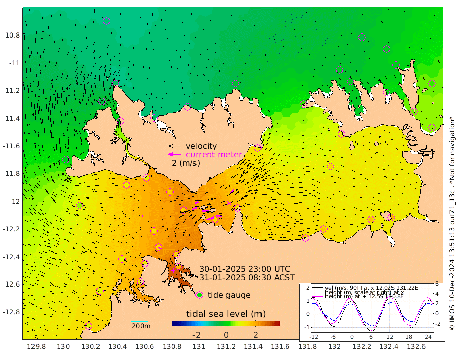 126cm/s 79T +4cm/s rms + 6cm/s 51T. Darwin_C1 52m 90cm/s 93T +4cm/s rms + 7cm/s -161T. Darwin_CW1 22m 69cm/s 69T +4cm/s rms + 8cm/s 61T. Darwin_CW2 34m 89cm/s 43T +3cm/s rms + 9cm/s 98T. Darwin_CW3 22m 109cm/s 89T +5cm/s rms + 7cm/s 88T. Darwin_C3 56m 55cm/s 65T +2cm/s rms + 9cm/s -126T. Darwin_CTbW 22m 20cm/s -71T +1cm/s rms + 1cm/s -47T. DARBGF 30m 33cm/s -46T +4cm/s rms + 3cm/s 80T. NRSDAR 19m -79cm Goodrich Bank 85cm Point Jenny 84cm Native Point 97cm Fish Reef 122cm Tapa Bay -17cm Point Fawcett (Offshore) 134cm Burge Point 101cm Munkunuwa 50cm Beagle A 150cm Parsons Bank 127cm Fenton Patches 162cm Hancox Shoal Area 157cm Nightcliff 174cm Darwin 137cm Charles Point Patches 148cm Glyde Point 158cm Chambers Bay 162cm Point Stuart 141cm Cape Hotham 136cm Christine Reef 177cm West Alligator Head 182cm East Field Island 122cm Two Hills Bay 124cm Camp Point 111cm Medina Inlet South -24cm South Barlow Point -54cm St. Asaph Bay -77cm Cape Van Dieman -68cm Snake Bay -71cm Cache Point -39cm Point Jahleel (Off) 27cm Cape Don -20cm Port Essington -21cm Smith Point - West -17cm NW Peacock Island -45cm North Of Jones Shoal -12cm Peacock Island 39cm Point David -9cm D'urville Point 47cm Copeland Island 25cm One Tree Point