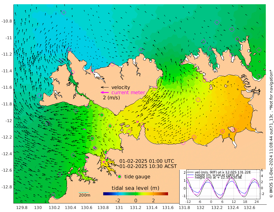 7cm/s 103T +4cm/s rms + 6cm/s 51T. Darwin_C1 52m 7cm/s 76T +4cm/s rms + 7cm/s -161T. Darwin_CW1 22m 5cm/s 33T +4cm/s rms + 8cm/s 61T. Darwin_CW2 34m 34cm/s 38T +3cm/s rms + 9cm/s 98T. Darwin_CW3 22m 24cm/s 92T +5cm/s rms + 7cm/s 88T. Darwin_C3 56m 5cm/s -118T +2cm/s rms + 9cm/s -126T. Darwin_CTbW 22m 70cm/s -85T +1cm/s rms + 1cm/s -47T. DARBGF 30m 85cm/s -54T +4cm/s rms + 3cm/s 80T. NRSDAR 19m -120cm Goodrich Bank -52cm Point Jenny -55cm Native Point -44cm Fish Reef -26cm Tapa Bay -116cm Point Fawcett (Offshore) -18cm Burge Point -49cm Munkunuwa -77cm Beagle A 3cm Parsons Bank -18cm Fenton Patches 30cm Hancox Shoal Area 13cm Nightcliff 24cm Darwin -12cm Charles Point Patches 71cm Glyde Point 156cm Chambers Bay 173cm Point Stuart 95cm Cape Hotham 131cm Christine Reef 199cm West Alligator Head 234cm East Field Island 106cm Two Hills Bay 101cm Camp Point -35cm Medina Inlet South -120cm South Barlow Point -129cm St. Asaph Bay -125cm Cape Van Dieman -121cm Snake Bay -114cm Cache Point -82cm Point Jahleel (Off) -22cm Cape Don -68cm Port Essington -70cm Smith Point - West -61cm NW Peacock Island -83cm North Of Jones Shoal -26cm Peacock Island -11cm Point David -59cm D'urville Point -1cm Copeland Island -21cm One Tree Point