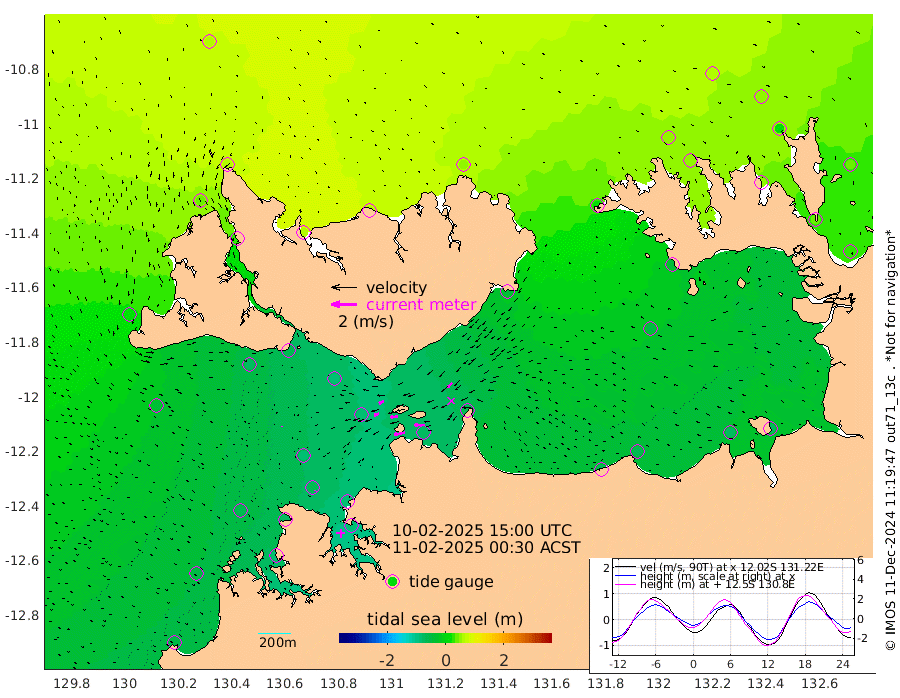 88cm/s -101T +4cm/s rms + 6cm/s 51T. Darwin_C1 52m 82cm/s -91T +4cm/s rms + 7cm/s -161T. Darwin_CW1 22m 40cm/s -108T +4cm/s rms + 8cm/s 61T. Darwin_CW2 34m 54cm/s -136T +3cm/s rms + 9cm/s 98T. Darwin_CW3 22m 56cm/s -92T +5cm/s rms + 7cm/s 88T. Darwin_C3 56m 41cm/s -116T +2cm/s rms + 9cm/s -126T. Darwin_CTbW 22m 3cm/s -174T +1cm/s rms + 1cm/s -47T. DARBGF 30m 5cm/s -140T +4cm/s rms + 3cm/s 80T. NRSDAR 19m 65cm Goodrich Bank -56cm Point Jenny -54cm Native Point -66cm Fish Reef -70cm Tapa Bay 14cm Point Fawcett (Offshore) -86cm Burge Point -74cm Munkunuwa -43cm Beagle A -81cm Parsons Bank -86cm Fenton Patches -81cm Hancox Shoal Area -86cm Nightcliff -88cm Darwin -65cm Charles Point Patches -68cm Glyde Point -63cm Chambers Bay -67cm Point Stuart -59cm Cape Hotham -56cm Christine Reef -77cm West Alligator Head -77cm East Field Island -42cm Two Hills Bay -42cm Camp Point -65cm Medina Inlet South 24cm South Barlow Point 38cm St. Asaph Bay 64cm Cape Van Dieman 67cm Snake Bay 62cm Cache Point 46cm Point Jahleel (Off) 15cm Cape Don 47cm Port Essington 45cm Smith Point - West 50cm NW Peacock Island 64cm North Of Jones Shoal 21cm Peacock Island 39cm Point David 46cm D'urville Point 34cm Copeland Island 44cm One Tree Point