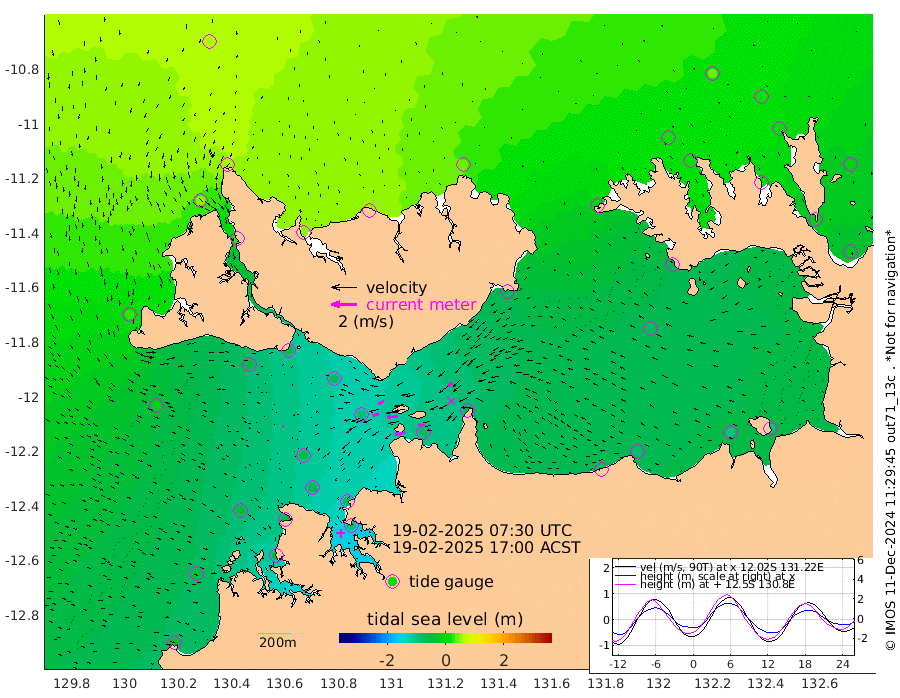 80cm/s -101T +4cm/s rms + 6cm/s 51T. Darwin_C1 52m 49cm/s -91T +4cm/s rms + 7cm/s -161T. Darwin_CW1 22m 50cm/s -107T +4cm/s rms + 8cm/s 61T. Darwin_CW2 34m 41cm/s -135T +3cm/s rms + 9cm/s 98T. Darwin_CW3 22m 84cm/s -91T +5cm/s rms + 7cm/s 88T. Darwin_C3 56m 49cm/s -115T +2cm/s rms + 9cm/s -126T. Darwin_CTbW 22m 10cm/s 116T +1cm/s rms + 1cm/s -47T. DARBGF 30m 16cm/s 152T +4cm/s rms + 3cm/s 80T. NRSDAR 19m 59cm Goodrich Bank -32cm Point Jenny -31cm Native Point -38cm Fish Reef -52cm Tapa Bay 26cm Point Fawcett (Offshore) -55cm Burge Point -48cm Munkunuwa -3cm Beagle A -76cm Parsons Bank -48cm Fenton Patches -80cm Hancox Shoal Area -74cm Nightcliff -87cm Darwin -63cm Charles Point Patches -71cm Glyde Point -85cm Chambers Bay -85cm Point Stuart -66cm Cape Hotham -72cm Christine Reef -95cm West Alligator Head -94cm East Field Island -64cm Two Hills Bay -56cm Camp Point -52cm Medina Inlet South 25cm South Barlow Point 46cm St. Asaph Bay 58cm Cape Van Dieman 51cm Snake Bay 56cm Cache Point 35cm Point Jahleel (Off) -10cm Cape Don 20cm Port Essington 20cm Smith Point - West 19cm NW Peacock Island 34cm North Of Jones Shoal 10cm Peacock Island -9cm Point David 13cm D'urville Point -14cm Copeland Island -6cm One Tree Point