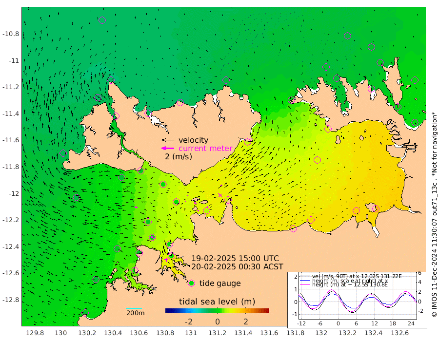 19cm/s 81T +4cm/s rms + 6cm/s 51T. Darwin_C1 52m 16cm/s 85T +4cm/s rms + 7cm/s -161T. Darwin_CW1 22m 10cm/s 62T +4cm/s rms + 8cm/s 61T. Darwin_CW2 34m 27cm/s 43T +3cm/s rms + 9cm/s 98T. Darwin_CW3 22m 35cm/s 93T +5cm/s rms + 7cm/s 88T. Darwin_C3 56m 11cm/s 66T +2cm/s rms + 9cm/s -126T. Darwin_CTbW 22m 46cm/s -83T +1cm/s rms + 1cm/s -47T. DARBGF 30m 58cm/s -53T +4cm/s rms + 3cm/s 80T. NRSDAR 19m -71cm Goodrich Bank -33cm Point Jenny -37cm Native Point -21cm Fish Reef -24cm Tapa Bay -66cm Point Fawcett (Offshore) -10cm Burge Point -36cm Munkunuwa -47cm Beagle A 2cm Parsons Bank -14cm Fenton Patches 12cm Hancox Shoal Area 6cm Nightcliff 18cm Darwin -8cm Charles Point Patches 57cm Glyde Point 118cm Chambers Bay 137cm Point Stuart 74cm Cape Hotham 101cm Christine Reef 156cm West Alligator Head 182cm East Field Island 92cm Two Hills Bay 78cm Camp Point -17cm Medina Inlet South -69cm South Barlow Point -79cm St. Asaph Bay -74cm Cape Van Dieman -66cm Snake Bay -64cm Cache Point -44cm Point Jahleel (Off) 5cm Cape Don -31cm Port Essington -34cm Smith Point - West -29cm NW Peacock Island -38cm North Of Jones Shoal -11cm Peacock Island 1cm Point David -28cm D'urville Point 6cm Copeland Island 2cm One Tree Point
