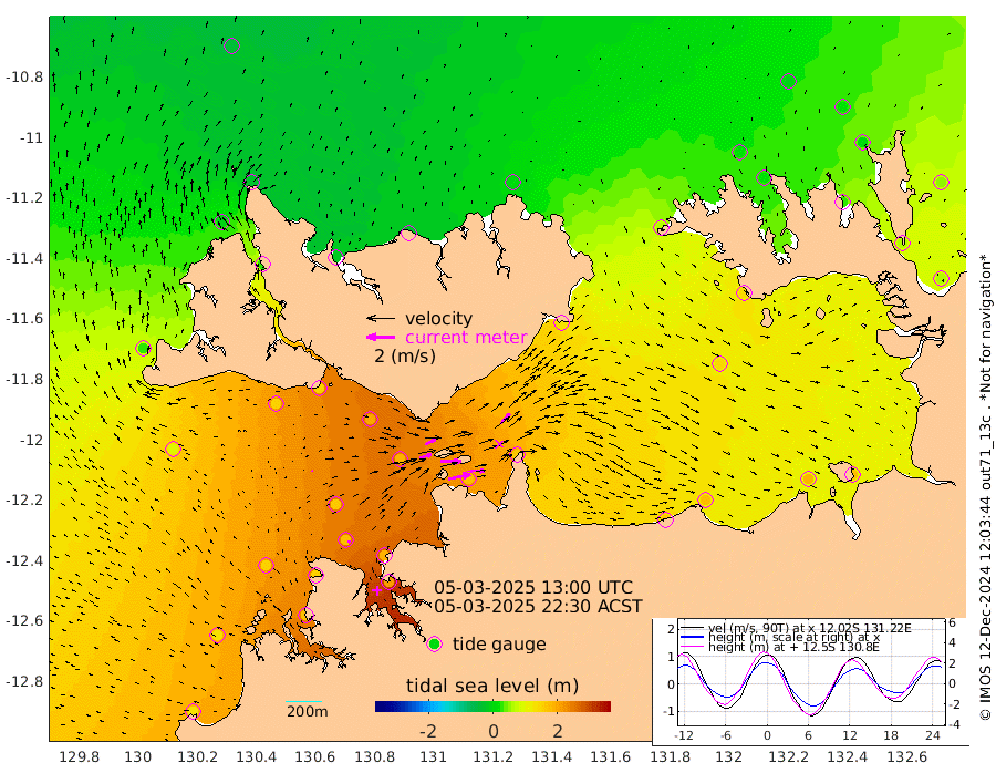 158cm/s 78T +4cm/s rms + 6cm/s 51T. Darwin_C1 52m 101cm/s 92T +4cm/s rms + 7cm/s -161T. Darwin_CW1 22m 89cm/s 72T +4cm/s rms + 8cm/s 61T. Darwin_CW2 34m 95cm/s 44T +3cm/s rms + 9cm/s 98T. Darwin_CW3 22m 146cm/s 89T +5cm/s rms + 7cm/s 88T. Darwin_C3 56m 81cm/s 65T +2cm/s rms + 9cm/s -126T. Darwin_CTbW 22m 8cm/s -15T +1cm/s rms + 1cm/s -47T. DARBGF 30m 15cm/s -18T +4cm/s rms + 3cm/s 80T. NRSDAR 19m -37cm Goodrich Bank 127cm Point Jenny 126cm Native Point 146cm Fish Reef 156cm Tapa Bay 32cm Point Fawcett (Offshore) 179cm Burge Point 147cm Munkunuwa 98cm Beagle A 193cm Parsons Bank 168cm Fenton Patches 188cm Hancox Shoal Area 183cm Nightcliff 213cm Darwin 174cm Charles Point Patches 173cm Glyde Point 159cm Chambers Bay 170cm Point Stuart 159cm Cape Hotham 143cm Christine Reef 184cm West Alligator Head 179cm East Field Island 144cm Two Hills Bay 130cm Camp Point 157cm Medina Inlet South 28cm South Barlow Point -10cm St. Asaph Bay -34cm Cape Van Dieman -20cm Snake Bay -27cm Cache Point 1cm Point Jahleel (Off) 64cm Cape Don 20cm Port Essington 19cm Smith Point - West 21cm NW Peacock Island -10cm North Of Jones Shoal 0cm Peacock Island 62cm Point David 29cm D'urville Point 66cm Copeland Island 54cm One Tree Point