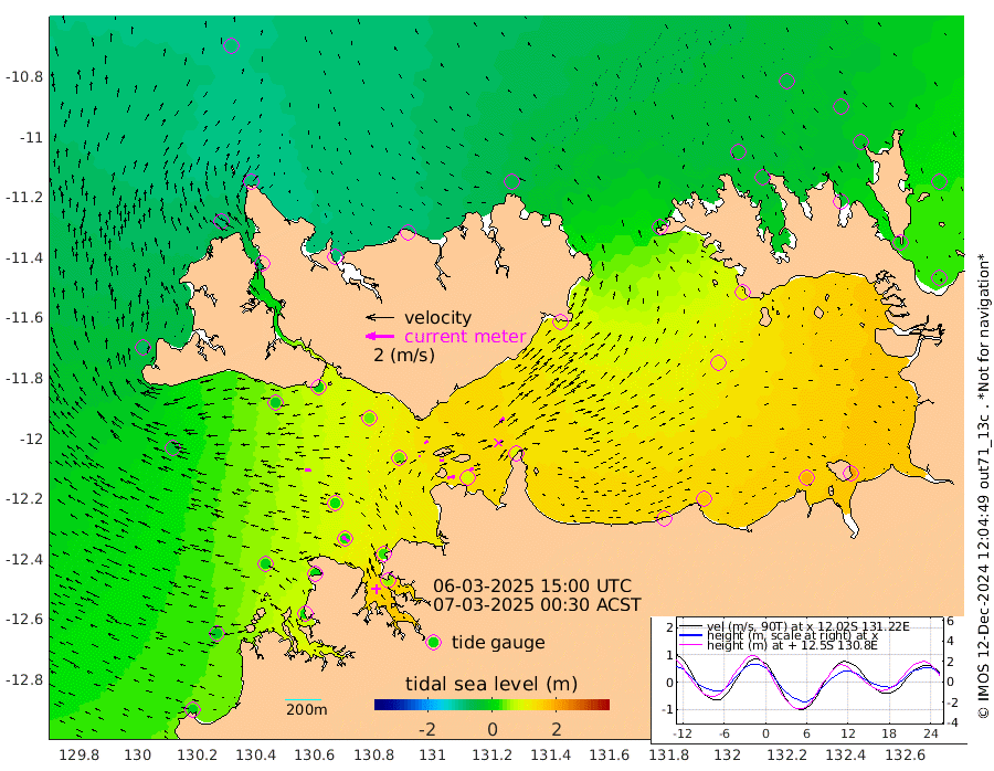 53cm/s 79T +4cm/s rms + 6cm/s 51T. Darwin_C1 52m 27cm/s 87T +4cm/s rms + 7cm/s -161T. Darwin_CW1 22m 13cm/s 63T +4cm/s rms + 8cm/s 61T. Darwin_CW2 34m 45cm/s 43T +3cm/s rms + 9cm/s 98T. Darwin_CW3 22m 32cm/s 93T +5cm/s rms + 7cm/s 88T. Darwin_C3 56m 29cm/s 63T +2cm/s rms + 9cm/s -126T. Darwin_CTbW 22m 47cm/s -84T +1cm/s rms + 1cm/s -47T. DARBGF 30m 57cm/s -53T +4cm/s rms + 3cm/s 80T. NRSDAR 19m -83cm Goodrich Bank -11cm Point Jenny -13cm Native Point 0cm Fish Reef 3cm Tapa Bay -71cm Point Fawcett (Offshore) 21cm Burge Point -12cm Munkunuwa -29cm Beagle A 35cm Parsons Bank 18cm Fenton Patches 44cm Hancox Shoal Area 30cm Nightcliff 45cm Darwin 12cm Charles Point Patches 83cm Glyde Point 136cm Chambers Bay 162cm Point Stuart 98cm Cape Hotham 121cm Christine Reef 183cm West Alligator Head 206cm East Field Island 111cm Two Hills Bay 95cm Camp Point -1cm Medina Inlet South -74cm South Barlow Point -90cm St. Asaph Bay -85cm Cape Van Dieman -79cm Snake Bay -74cm Cache Point -49cm Point Jahleel (Off) 8cm Cape Don -33cm Port Essington -34cm Smith Point - West -27cm NW Peacock Island -54cm North Of Jones Shoal -15cm Peacock Island 17cm Point David -23cm D'urville Point 24cm Copeland Island 8cm One Tree Point