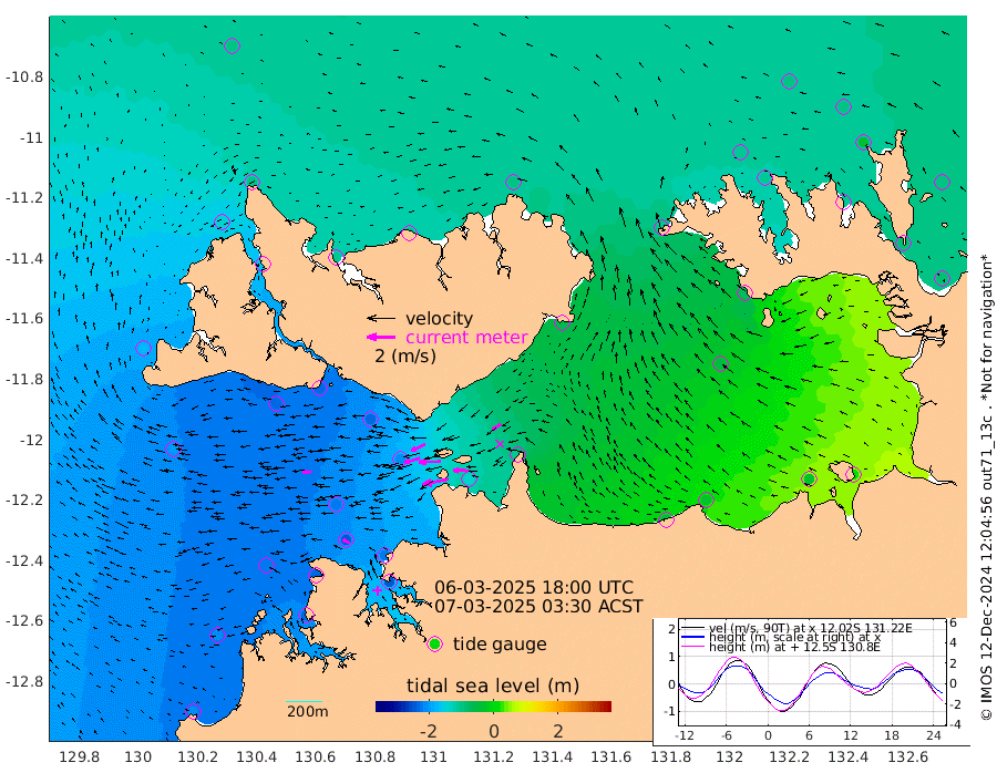 187cm/s -102T +4cm/s rms + 6cm/s 51T. Darwin_C1 52m 122cm/s -89T +4cm/s rms + 7cm/s -161T. Darwin_CW1 22m 112cm/s -107T +4cm/s rms + 8cm/s 61T. Darwin_CW2 34m 70cm/s -126T +3cm/s rms + 9cm/s 98T. Darwin_CW3 22m 153cm/s -91T +5cm/s rms + 7cm/s 88T. Darwin_C3 56m 108cm/s -115T +2cm/s rms + 9cm/s -126T. Darwin_CTbW 22m 67cm/s -93T +1cm/s rms + 1cm/s -47T. DARBGF 30m 53cm/s -65T +4cm/s rms + 3cm/s 80T. NRSDAR 19m -92cm Goodrich Bank -212cm Point Jenny -211cm Native Point -223cm Fish Reef -227cm Tapa Bay -177cm Point Fawcett (Offshore) -229cm Burge Point -227cm Munkunuwa -195cm Beagle A -228cm Parsons Bank -216cm Fenton Patches -211cm Hancox Shoal Area -224cm Nightcliff -241cm Darwin -242cm Charles Point Patches -140cm Glyde Point -53cm Chambers Bay -33cm Point Stuart -103cm Cape Hotham -53cm Christine Reef -24cm West Alligator Head 16cm East Field Island -70cm Two Hills Bay -64cm Camp Point -233cm Medina Inlet South -164cm South Barlow Point -139cm St. Asaph Bay -98cm Cape Van Dieman -107cm Snake Bay -98cm Cache Point -97cm Point Jahleel (Off) -107cm Cape Don -103cm Port Essington -105cm Smith Point - West -97cm NW Peacock Island -97cm North Of Jones Shoal -34cm Peacock Island -86cm Point David -103cm D'urville Point -83cm Copeland Island -93cm One Tree Point