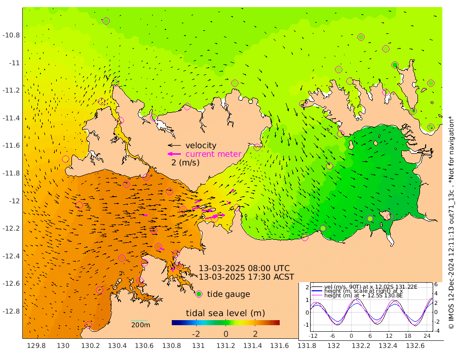 192cm/s 78T +4cm/s rms + 6cm/s 51T. Darwin_C1 52m 150cm/s 92T +4cm/s rms + 7cm/s -161T. Darwin_CW1 22m 113cm/s 73T +4cm/s rms + 8cm/s 61T. Darwin_CW2 34m 94cm/s 47T +3cm/s rms + 9cm/s 98T. Darwin_CW3 22m 162cm/s 89T +5cm/s rms + 7cm/s 88T. Darwin_C3 56m 100cm/s 65T +2cm/s rms + 9cm/s -126T. Darwin_CTbW 22m 69cm/s 87T +1cm/s rms + 1cm/s -47T. DARBGF 30m 67cm/s 116T +4cm/s rms + 3cm/s 80T. NRSDAR 19m 43cm Goodrich Bank 223cm Point Jenny 223cm Native Point 239cm Fish Reef 240cm Tapa Bay 150cm Point Fawcett (Offshore) 251cm Burge Point 238cm Munkunuwa 210cm Beagle A 235cm Parsons Bank 248cm Fenton Patches 219cm Hancox Shoal Area 243cm Nightcliff 254cm Darwin 244cm Charles Point Patches 156cm Glyde Point 71cm Chambers Bay 53cm Point Stuart 112cm Cape Hotham 63cm Christine Reef 50cm West Alligator Head 16cm East Field Island 71cm Two Hills Bay 74cm Camp Point 240cm Medina Inlet South 131cm South Barlow Point 102cm St. Asaph Bay 51cm Cape Van Dieman 55cm Snake Bay 49cm Cache Point 55cm Point Jahleel (Off) 77cm Cape Don 55cm Port Essington 57cm Smith Point - West 45cm NW Peacock Island 38cm North Of Jones Shoal 14cm Peacock Island 39cm Point David 52cm D'urville Point 37cm Copeland Island 42cm One Tree Point