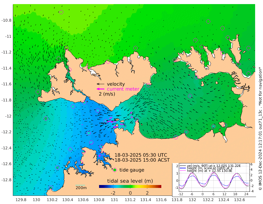 141cm/s -101T +4cm/s rms + 6cm/s 51T. Darwin_C1 52m 111cm/s -90T +4cm/s rms + 7cm/s -161T. Darwin_CW1 22m 94cm/s -107T +4cm/s rms + 8cm/s 61T. Darwin_CW2 34m 68cm/s -134T +3cm/s rms + 9cm/s 98T. Darwin_CW3 22m 148cm/s -91T +5cm/s rms + 7cm/s 88T. Darwin_C3 56m 80cm/s -115T +2cm/s rms + 9cm/s -126T. Darwin_CTbW 22m 16cm/s -111T +1cm/s rms + 1cm/s -47T. DARBGF 30m 13cm/s -112T +4cm/s rms + 3cm/s 80T. NRSDAR 19m 44cm Goodrich Bank -113cm Point Jenny -112cm Native Point -126cm Fish Reef -144cm Tapa Bay -27cm Point Fawcett (Offshore) -151cm Burge Point -141cm Munkunuwa -77cm Beagle A -168cm Parsons Bank -140cm Fenton Patches -167cm Hancox Shoal Area -167cm Nightcliff -188cm Darwin -160cm Charles Point Patches -129cm Glyde Point -107cm Chambers Bay -99cm Point Stuart -107cm Cape Hotham -90cm Christine Reef -107cm West Alligator Head -93cm East Field Island -85cm Two Hills Bay -83cm Camp Point -145cm Medina Inlet South -23cm South Barlow Point 10cm St. Asaph Bay 42cm Cape Van Dieman 32cm Snake Bay 41cm Cache Point 17cm Point Jahleel (Off) -35cm Cape Don 1cm Port Essington 2cm Smith Point - West 4cm NW Peacock Island 22cm North Of Jones Shoal 5cm Peacock Island -24cm Point David -4cm D'urville Point -29cm Copeland Island -21cm One Tree Point