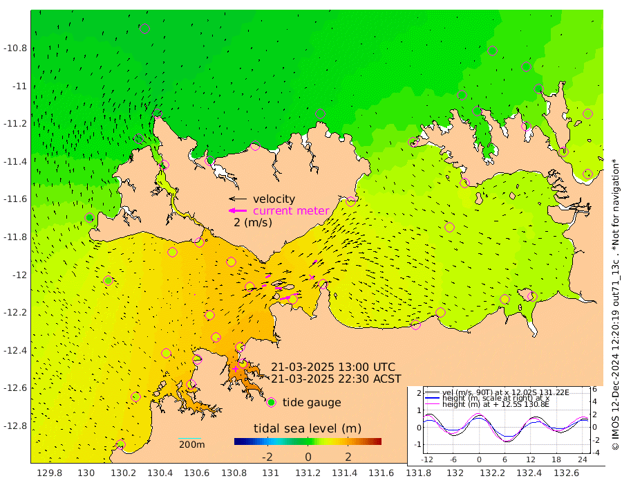 113cm/s 78T +4cm/s rms + 6cm/s 51T. Darwin_C1 52m 55cm/s 90T +4cm/s rms + 7cm/s -161T. Darwin_CW1 22m 48cm/s 74T +4cm/s rms + 8cm/s 61T. Darwin_CW2 34m 69cm/s 44T +3cm/s rms + 9cm/s 98T. Darwin_CW3 22m 80cm/s 90T +5cm/s rms + 7cm/s 88T. Darwin_C3 56m 61cm/s 65T +2cm/s rms + 9cm/s -126T. Darwin_CTbW 22m 6cm/s -47T +1cm/s rms + 1cm/s -47T. DARBGF 30m 12cm/s -19T +4cm/s rms + 3cm/s 80T. NRSDAR 19m -22cm Goodrich Bank 65cm Point Jenny 65cm Native Point 70cm Fish Reef 87cm Tapa Bay 10cm Point Fawcett (Offshore) 95cm Burge Point 77cm Munkunuwa 42cm Beagle A 112cm Parsons Bank 85cm Fenton Patches 113cm Hancox Shoal Area 112cm Nightcliff 123cm Darwin 98cm Charles Point Patches 100cm Glyde Point 94cm Chambers Bay 98cm Point Stuart 94cm Cape Hotham 87cm Christine Reef 105cm West Alligator Head 100cm East Field Island 86cm Two Hills Bay 80cm Camp Point 85cm Medina Inlet South 14cm South Barlow Point -10cm St. Asaph Bay -20cm Cape Van Dieman -6cm Snake Bay -18cm Cache Point 2cm Point Jahleel (Off) 42cm Cape Don 16cm Port Essington 16cm Smith Point - West 21cm NW Peacock Island 4cm North Of Jones Shoal 4cm Peacock Island 57cm Point David 27cm D'urville Point 60cm Copeland Island 50cm One Tree Point