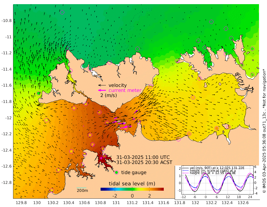 187cm/s 78T +4cm/s rms + 6cm/s 51T. Darwin_C1 52m 146cm/s 92T +4cm/s rms + 7cm/s -161T. Darwin_CW1 22m 113cm/s 72T +4cm/s rms + 8cm/s 61T. Darwin_CW2 34m 118cm/s 44T +3cm/s rms + 9cm/s 98T. Darwin_CW3 22m 189cm/s 89T +5cm/s rms + 7cm/s 88T. Darwin_C3 56m 89cm/s 65T +2cm/s rms + 9cm/s -126T. Darwin_CTbW 22m 13cm/s -39T +1cm/s rms + 1cm/s -47T. DARBGF 30m 25cm/s -30T +4cm/s rms + 3cm/s 80T. NRSDAR 19m -68cm Goodrich Bank 151cm Point Jenny 151cm Native Point 172cm Fish Reef 191cm Tapa Bay 21cm Point Fawcett (Offshore) 223cm Burge Point 182cm Munkunuwa 114cm Beagle A 231cm Parsons Bank 207cm Fenton Patches 228cm Hancox Shoal Area 231cm Nightcliff 260cm Darwin 209cm Charles Point Patches 207cm Glyde Point 190cm Chambers Bay 199cm Point Stuart 186cm Cape Hotham 172cm Christine Reef 219cm West Alligator Head 216cm East Field Island 159cm Two Hills Bay 157cm Camp Point 190cm Medina Inlet South 15cm South Barlow Point -29cm St. Asaph Bay -66cm Cape Van Dieman -52cm Snake Bay -61cm Cache Point -24cm Point Jahleel (Off) 53cm Cape Don -9cm Port Essington -11cm Smith Point - West -10cm NW Peacock Island -43cm North Of Jones Shoal -11cm Peacock Island 38cm Point David -2cm D'urville Point 43cm Copeland Island 28cm One Tree Point