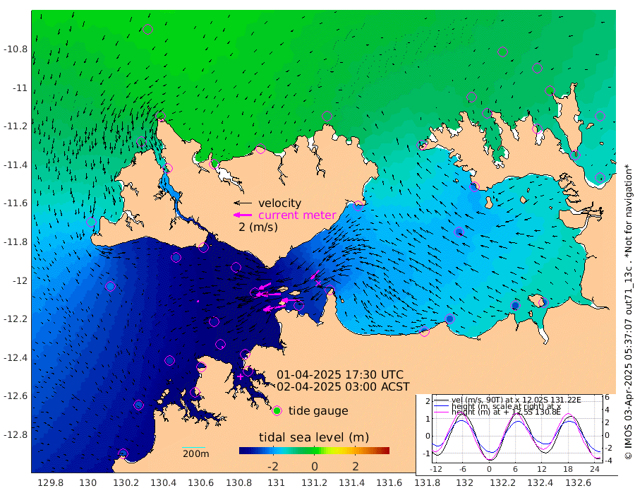 256cm/s -101T +4cm/s rms + 6cm/s 51T. Darwin_C1 52m 202cm/s -91T +4cm/s rms + 7cm/s -161T. Darwin_CW1 22m 128cm/s -106T +4cm/s rms + 8cm/s 61T. Darwin_CW2 34m 129cm/s -136T +3cm/s rms + 9cm/s 98T. Darwin_CW3 22m 212cm/s -90T +5cm/s rms + 7cm/s 88T. Darwin_C3 56m 144cm/s -115T +2cm/s rms + 9cm/s -126T. Darwin_CTbW 22m 22cm/s -117T +1cm/s rms + 1cm/s -47T. DARBGF 30m 13cm/s -133T +4cm/s rms + 3cm/s 80T. NRSDAR 19m -5cm Goodrich Bank -256cm Point Jenny -253cm Native Point -277cm Fish Reef -294cm Tapa Bay -124cm Point Fawcett (Offshore) -324cm Burge Point -267cm Munkunuwa -218cm Beagle A -323cm Parsons Bank -308cm Fenton Patches -322cm Hancox Shoal Area -327cm Nightcliff -361cm Darwin -322cm Charles Point Patches -281cm Glyde Point -240cm Chambers Bay -243cm Point Stuart -250cm Cape Hotham -227cm Christine Reef -259cm West Alligator Head -247cm East Field Island -217cm Two Hills Bay -210cm Camp Point -290cm Medina Inlet South -104cm South Barlow Point -59cm St. Asaph Bay -9cm Cape Van Dieman -22cm Snake Bay -21cm Cache Point -50cm Point Jahleel (Off) -128cm Cape Don -68cm Port Essington -68cm Smith Point - West -66cm NW Peacock Island -36cm North Of Jones Shoal -16cm Peacock Island -102cm Point David -75cm D'urville Point -106cm Copeland Island -98cm One Tree Point
