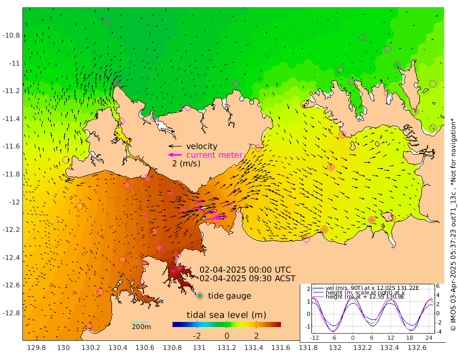 228cm/s 78T +4cm/s rms + 6cm/s 51T. Darwin_C1 52m 171cm/s 93T +4cm/s rms + 7cm/s -161T. Darwin_CW1 22m 131cm/s 72T +4cm/s rms + 8cm/s 61T. Darwin_CW2 34m 124cm/s 46T +3cm/s rms + 9cm/s 98T. Darwin_CW3 22m 211cm/s 89T +5cm/s rms + 7cm/s 88T. Darwin_C3 56m 116cm/s 66T +2cm/s rms + 9cm/s -126T. Darwin_CTbW 22m 18cm/s 53T +1cm/s rms + 1cm/s -47T. DARBGF 30m 12cm/s 14T +4cm/s rms + 3cm/s 80T. NRSDAR 19m -21cm Goodrich Bank 210cm Point Jenny 205cm Native Point 223cm Fish Reef 242cm Tapa Bay 92cm Point Fawcett (Offshore) 263cm Burge Point 227cm Munkunuwa 166cm Beagle A 265cm Parsons Bank 244cm Fenton Patches 266cm Hancox Shoal Area 272cm Nightcliff 292cm Darwin 256cm Charles Point Patches 225cm Glyde Point 204cm Chambers Bay 203cm Point Stuart 202cm Cape Hotham 193cm Christine Reef 221cm West Alligator Head 208cm East Field Island 176cm Two Hills Bay 165cm Camp Point 236cm Medina Inlet South 67cm South Barlow Point 33cm St. Asaph Bay -18cm Cape Van Dieman -11cm Snake Bay -7cm Cache Point 20cm Point Jahleel (Off) 89cm Cape Don 30cm Port Essington 31cm Smith Point - West 26cm NW Peacock Island 6cm North Of Jones Shoal 4cm Peacock Island 51cm Point David 33cm D'urville Point 56cm Copeland Island 50cm One Tree Point