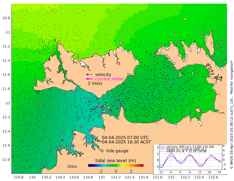 123cm/s -101T +4cm/s rms + 6cm/s 51T. Darwin_C1 52m 67cm/s -90T +4cm/s rms + 7cm/s -161T. Darwin_CW1 22m 56cm/s -107T +4cm/s rms + 8cm/s 61T. Darwin_CW2 34m 51cm/s -132T +3cm/s rms + 9cm/s 98T. Darwin_CW3 22m 80cm/s -91T +5cm/s rms + 7cm/s 88T. Darwin_C3 56m 70cm/s -115T +2cm/s rms + 9cm/s -126T. Darwin_CTbW 22m 9cm/s -107T +1cm/s rms + 1cm/s -47T. DARBGF 30m 10cm/s -109T +4cm/s rms + 3cm/s 80T. NRSDAR 19m 62cm Goodrich Bank -39cm Point Jenny -38cm Native Point -54cm Fish Reef -57cm Tapa Bay 17cm Point Fawcett (Offshore) -63cm Burge Point -69cm Munkunuwa -15cm Beagle A -86cm Parsons Bank -56cm Fenton Patches -79cm Hancox Shoal Area -72cm Nightcliff -85cm Darwin -57cm Charles Point Patches -60cm Glyde Point -50cm Chambers Bay -61cm Point Stuart -56cm Cape Hotham -41cm Christine Reef -70cm West Alligator Head -57cm East Field Island -49cm Two Hills Bay -27cm Camp Point -59cm Medina Inlet South 18cm South Barlow Point 41cm St. Asaph Bay 59cm Cape Van Dieman 52cm Snake Bay 57cm Cache Point 36cm Point Jahleel (Off) -1cm Cape Don 24cm Port Essington 21cm Smith Point - West 22cm NW Peacock Island 42cm North Of Jones Shoal 12cm Peacock Island -3cm Point David 15cm D'urville Point -8cm Copeland Island 3cm One Tree Point