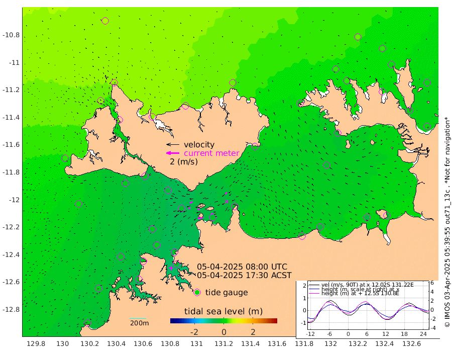 90cm/s -101T +4cm/s rms + 6cm/s 51T. Darwin_C1 52m 37cm/s -89T +4cm/s rms + 7cm/s -161T. Darwin_CW1 22m 29cm/s -107T +4cm/s rms + 8cm/s 61T. Darwin_CW2 34m 36cm/s -132T +3cm/s rms + 9cm/s 98T. Darwin_CW3 22m 37cm/s -91T +5cm/s rms + 7cm/s 88T. Darwin_C3 56m 53cm/s -116T +2cm/s rms + 9cm/s -126T. Darwin_CTbW 22m 3cm/s -110T +1cm/s rms + 1cm/s -47T. DARBGF 30m 5cm/s -122T +4cm/s rms + 3cm/s 80T. NRSDAR 19m 58cm Goodrich Bank -3cm Point Jenny -1cm Native Point -14cm Fish Reef -12cm Tapa Bay 31cm Point Fawcett (Offshore) -13cm Burge Point -21cm Munkunuwa 12cm Beagle A -35cm Parsons Bank -13cm Fenton Patches -30cm Hancox Shoal Area -23cm Nightcliff -28cm Darwin -7cm Charles Point Patches -25cm Glyde Point -31cm Chambers Bay -43cm Point Stuart -30cm Cape Hotham -24cm Christine Reef -52cm West Alligator Head -45cm East Field Island -31cm Two Hills Bay -7cm Camp Point -13cm Medina Inlet South 34cm South Barlow Point 47cm St. Asaph Bay 56cm Cape Van Dieman 53cm Snake Bay 53cm Cache Point 37cm Point Jahleel (Off) 9cm Cape Don 28cm Port Essington 23cm Smith Point - West 24cm NW Peacock Island 40cm North Of Jones Shoal 12cm Peacock Island 5cm Point David 18cm D'urville Point 0cm Copeland Island 10cm One Tree Point