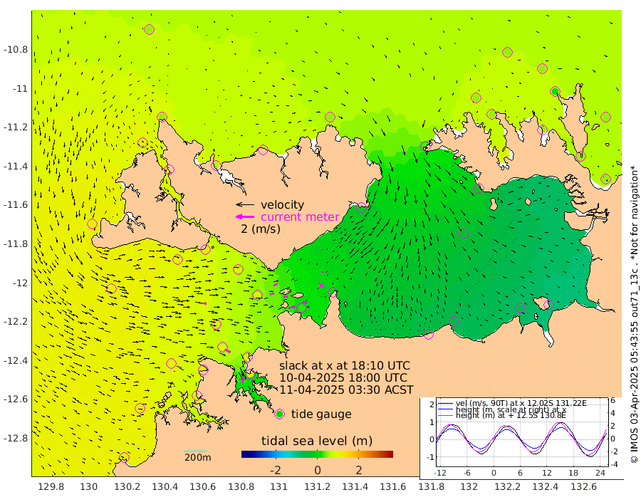 70cm/s 78T +4cm/s rms + 6cm/s 51T. Darwin_C1 52m 50cm/s 84T +4cm/s rms + 7cm/s -161T. Darwin_CW1 22m 44cm/s 76T +4cm/s rms + 8cm/s 61T. Darwin_CW2 34m 15cm/s 67T +3cm/s rms + 9cm/s 98T. Darwin_CW3 22m 48cm/s 86T +5cm/s rms + 7cm/s 88T. Darwin_C3 56m 45cm/s 64T +2cm/s rms + 9cm/s -126T. Darwin_CTbW 22m 62cm/s 92T +1cm/s rms + 1cm/s -47T. DARBGF 30m 64cm/s 121T +4cm/s rms + 3cm/s 80T. NRSDAR 19m 47cm Goodrich Bank 106cm Point Jenny 105cm Native Point 107cm Fish Reef 109cm Tapa Bay 103cm Point Fawcett (Offshore) 92cm Burge Point 109cm Munkunuwa 98cm Beagle A 93cm Parsons Bank 91cm Fenton Patches 84cm Hancox Shoal Area 100cm Nightcliff 89cm Darwin 100cm Charles Point Patches 29cm Glyde Point -26cm Chambers Bay -49cm Point Stuart 11cm Cape Hotham -34cm Christine Reef -63cm West Alligator Head -97cm East Field Island -12cm Two Hills Bay -15cm Camp Point 104cm Medina Inlet South 88cm South Barlow Point 80cm St. Asaph Bay 55cm Cape Van Dieman 57cm Snake Bay 53cm Cache Point 47cm Point Jahleel (Off) 40cm Cape Don 50cm Port Essington 53cm Smith Point - West 48cm NW Peacock Island 53cm North Of Jones Shoal 19cm Peacock Island 47cm Point David 53cm D'urville Point 46cm Copeland Island 47cm One Tree Point