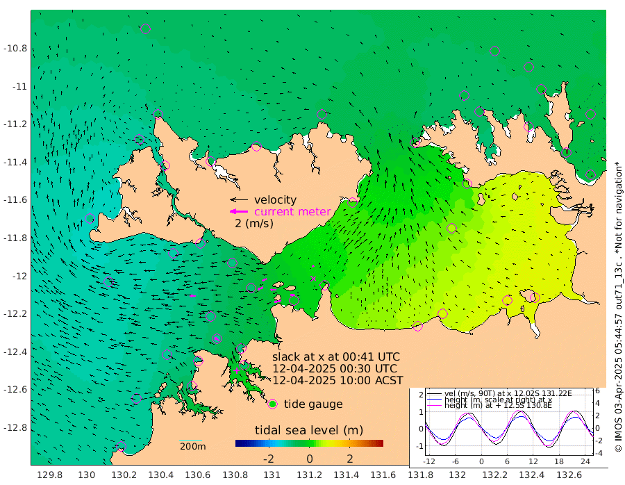 78cm/s -104T +4cm/s rms + 6cm/s 51T. Darwin_C1 52m 50cm/s -87T +4cm/s rms + 7cm/s -161T. Darwin_CW1 22m 64cm/s -109T +4cm/s rms + 8cm/s 61T. Darwin_CW2 34m 20cm/s -104T +3cm/s rms + 9cm/s 98T. Darwin_CW3 22m 62cm/s -94T +5cm/s rms + 7cm/s 88T. Darwin_C3 56m 54cm/s -116T +2cm/s rms + 9cm/s -126T. Darwin_CTbW 22m 67cm/s -88T +1cm/s rms + 1cm/s -47T. DARBGF 30m 65cm/s -58T +4cm/s rms + 3cm/s 80T. NRSDAR 19m -56cm Goodrich Bank -110cm Point Jenny -112cm Native Point -106cm Fish Reef -112cm Tapa Bay -101cm Point Fawcett (Offshore) -96cm Burge Point -117cm Munkunuwa -106cm Beagle A -93cm Parsons Bank -99cm Fenton Patches -79cm Hancox Shoal Area -96cm Nightcliff -90cm Darwin -102cm Charles Point Patches -18cm Glyde Point 58cm Chambers Bay 87cm Point Stuart 16cm Cape Hotham 58cm Christine Reef 105cm West Alligator Head 143cm East Field Island 42cm Two Hills Bay 33cm Camp Point -108cm Medina Inlet South -98cm South Barlow Point -86cm St. Asaph Bay -64cm Cape Van Dieman -66cm Snake Bay -54cm Cache Point -45cm Point Jahleel (Off) -31cm Cape Don -47cm Port Essington -49cm Smith Point - West -42cm NW Peacock Island -43cm North Of Jones Shoal -15cm Peacock Island -32cm Point David -48cm D'urville Point -28cm Copeland Island -31cm One Tree Point