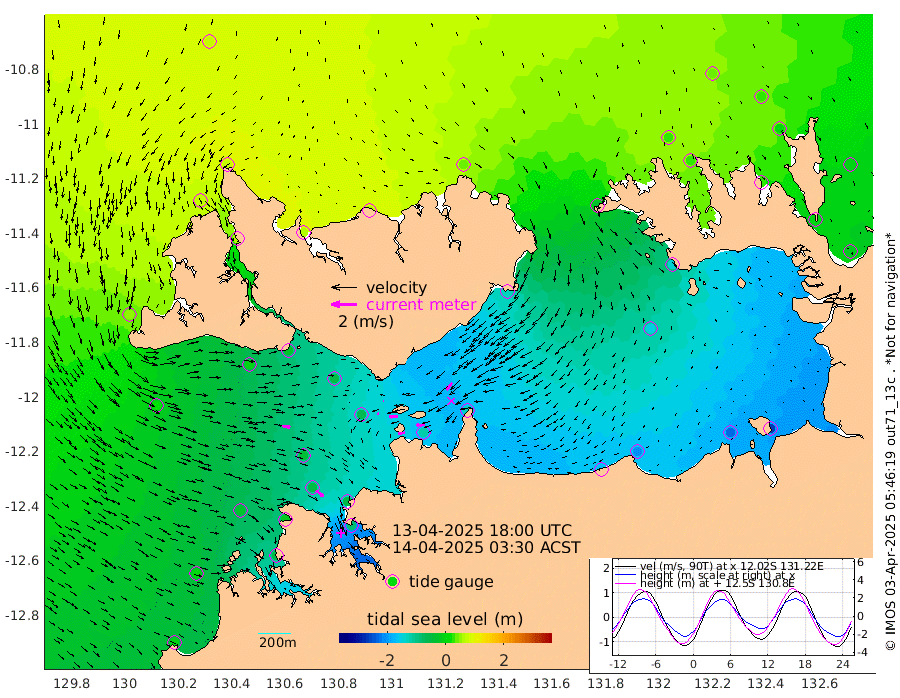52cm/s -101T +4cm/s rms + 6cm/s 51T. Darwin_C1 52m 64cm/s -91T +4cm/s rms + 7cm/s -161T. Darwin_CW1 22m 12cm/s -101T +4cm/s rms + 8cm/s 61T. Darwin_CW2 34m 70cm/s -141T +3cm/s rms + 9cm/s 98T. Darwin_CW3 22m 66cm/s -89T +5cm/s rms + 7cm/s 88T. Darwin_C3 56m 5cm/s -100T +2cm/s rms + 9cm/s -126T. Darwin_CTbW 22m 63cm/s 98T +1cm/s rms + 1cm/s -47T. DARBGF 30m 72cm/s 128T +4cm/s rms + 3cm/s 80T. NRSDAR 19m 68cm Goodrich Bank 0cm Point Jenny 4cm Native Point -24cm Fish Reef -18cm Tapa Bay 51cm Point Fawcett (Offshore) -49cm Burge Point -4cm Munkunuwa 14cm Beagle A -53cm Parsons Bank -38cm Fenton Patches -62cm Hancox Shoal Area -52cm Nightcliff -82cm Darwin -48cm Charles Point Patches -115cm Glyde Point -172cm Chambers Bay -205cm Point Stuart -132cm Cape Hotham -155cm Christine Reef -231cm West Alligator Head -265cm East Field Island -144cm Two Hills Bay -131cm Camp Point -29cm Medina Inlet South 58cm South Barlow Point 71cm St. Asaph Bay 74cm Cape Van Dieman 65cm Snake Bay 60cm Cache Point 34cm Point Jahleel (Off) -24cm Cape Don 24cm Port Essington 31cm Smith Point - West 25cm NW Peacock Island 36cm North Of Jones Shoal 11cm Peacock Island -6cm Point David 25cm D'urville Point -11cm Copeland Island -9cm One Tree Point
