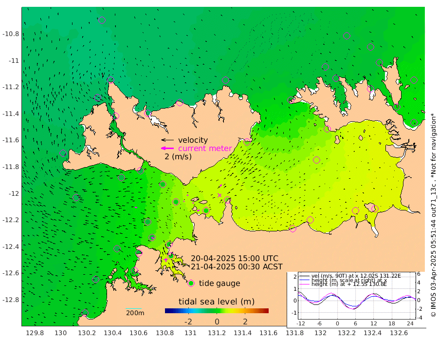 33cm/s 80T +4cm/s rms + 6cm/s 51T. Darwin_C1 52m 4cm/s -77T +4cm/s rms + 7cm/s -161T. Darwin_CW1 22m 10cm/s -95T +4cm/s rms + 8cm/s 61T. Darwin_CW2 34m 32cm/s 42T +3cm/s rms + 9cm/s 98T. Darwin_CW3 22m 15cm/s -96T +5cm/s rms + 7cm/s 88T. Darwin_C3 56m 18cm/s 63T +2cm/s rms + 9cm/s -126T. Darwin_CTbW 22m 34cm/s -88T +1cm/s rms + 1cm/s -47T. DARBGF 30m 39cm/s -55T +4cm/s rms + 3cm/s 80T. NRSDAR 19m -73cm Goodrich Bank -48cm Point Jenny -50cm Native Point -49cm Fish Reef -37cm Tapa Bay -77cm Point Fawcett (Offshore) -42cm Burge Point -53cm Munkunuwa -63cm Beagle A -22cm Parsons Bank -39cm Fenton Patches -6cm Hancox Shoal Area -14cm Nightcliff -21cm Darwin -41cm Charles Point Patches 19cm Glyde Point 72cm Chambers Bay 83cm Point Stuart 38cm Cape Hotham 57cm Christine Reef 95cm West Alligator Head 112cm East Field Island 50cm Two Hills Bay 41cm Camp Point -48cm Medina Inlet South -78cm South Barlow Point -83cm St. Asaph Bay -74cm Cape Van Dieman -69cm Snake Bay -67cm Cache Point -49cm Point Jahleel (Off) -15cm Cape Don -38cm Port Essington -36cm Smith Point - West -29cm NW Peacock Island -44cm North Of Jones Shoal -12cm Peacock Island 12cm Point David -25cm D'urville Point 18cm Copeland Island 1cm One Tree Point