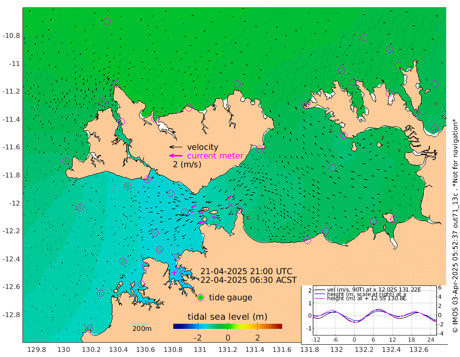 132cm/s -102T +4cm/s rms + 6cm/s 51T. Darwin_C1 52m 75cm/s -89T +4cm/s rms + 7cm/s -161T. Darwin_CW1 22m 42cm/s -106T +4cm/s rms + 8cm/s 61T. Darwin_CW2 34m 66cm/s -133T +3cm/s rms + 9cm/s 98T. Darwin_CW3 22m 63cm/s -90T +5cm/s rms + 7cm/s 88T. Darwin_C3 56m 80cm/s -115T +2cm/s rms + 9cm/s -126T. Darwin_CTbW 22m 11cm/s -103T +1cm/s rms + 1cm/s -47T. DARBGF 30m 6cm/s -98T +4cm/s rms + 3cm/s 80T. NRSDAR 19m -26cm Goodrich Bank -109cm Point Jenny -108cm Native Point -100cm Fish Reef -116cm Tapa Bay -63cm Point Fawcett (Offshore) -116cm Burge Point -92cm Munkunuwa -91cm Beagle A -115cm Parsons Bank -113cm Fenton Patches -120cm Hancox Shoal Area -122cm Nightcliff -124cm Darwin -118cm Charles Point Patches -104cm Glyde Point -96cm Chambers Bay -89cm Point Stuart -89cm Cape Hotham -97cm Christine Reef -94cm West Alligator Head -88cm East Field Island -84cm Two Hills Bay -85cm Camp Point -105cm Medina Inlet South -53cm South Barlow Point -40cm St. Asaph Bay -28cm Cape Van Dieman -30cm Snake Bay -33cm Cache Point -39cm Point Jahleel (Off) -66cm Cape Don -46cm Port Essington -48cm Smith Point - West -48cm NW Peacock Island -34cm North Of Jones Shoal -13cm Peacock Island -60cm Point David -51cm D'urville Point -60cm Copeland Island -57cm One Tree Point