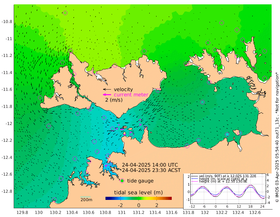 65cm/s -101T +4cm/s rms + 6cm/s 51T. Darwin_C1 52m 65cm/s -91T +4cm/s rms + 7cm/s -161T. Darwin_CW1 22m 47cm/s -107T +4cm/s rms + 8cm/s 61T. Darwin_CW2 34m 45cm/s -139T +3cm/s rms + 9cm/s 98T. Darwin_CW3 22m 80cm/s -91T +5cm/s rms + 7cm/s 88T. Darwin_C3 56m 31cm/s -115T +2cm/s rms + 9cm/s -126T. Darwin_CTbW 22m 8cm/s 137T +1cm/s rms + 1cm/s -47T. DARBGF 30m 11cm/s 148T +4cm/s rms + 3cm/s 80T. NRSDAR 19m 40cm Goodrich Bank -93cm Point Jenny -92cm Native Point -105cm Fish Reef -113cm Tapa Bay -16cm Point Fawcett (Offshore) -134cm Burge Point -101cm Munkunuwa -84cm Beagle A -121cm Parsons Bank -135cm Fenton Patches -129cm Hancox Shoal Area -146cm Nightcliff -146cm Darwin -119cm Charles Point Patches -122cm Glyde Point -122cm Chambers Bay -121cm Point Stuart -111cm Cape Hotham -110cm Christine Reef -135cm West Alligator Head -143cm East Field Island -92cm Two Hills Bay -99cm Camp Point -110cm Medina Inlet South -7cm South Barlow Point 11cm St. Asaph Bay 40cm Cape Van Dieman 35cm Snake Bay 36cm Cache Point 16cm Point Jahleel (Off) -20cm Cape Don 21cm Port Essington 21cm Smith Point - West 23cm NW Peacock Island 32cm North Of Jones Shoal 10cm Peacock Island 8cm Point David 21cm D'urville Point 5cm Copeland Island 10cm One Tree Point
