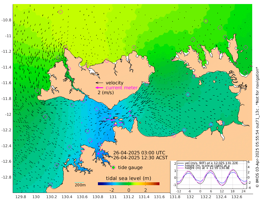 98cm/s -101T +4cm/s rms + 6cm/s 51T. Darwin_C1 52m 96cm/s -91T +4cm/s rms + 7cm/s -161T. Darwin_CW1 22m 61cm/s -106T +4cm/s rms + 8cm/s 61T. Darwin_CW2 34m 66cm/s -137T +3cm/s rms + 9cm/s 98T. Darwin_CW3 22m 115cm/s -91T +5cm/s rms + 7cm/s 88T. Darwin_C3 56m 45cm/s -115T +2cm/s rms + 9cm/s -126T. Darwin_CTbW 22m 14cm/s 122T +1cm/s rms + 1cm/s -47T. DARBGF 30m 21cm/s 145T +4cm/s rms + 3cm/s 80T. NRSDAR 19m 65cm Goodrich Bank -102cm Point Jenny -99cm Native Point -107cm Fish Reef -129cm Tapa Bay -3cm Point Fawcett (Offshore) -146cm Burge Point -115cm Munkunuwa -64cm Beagle A -147cm Parsons Bank -132cm Fenton Patches -157cm Hancox Shoal Area -158cm Nightcliff -171cm Darwin -142cm Charles Point Patches -139cm Glyde Point -147cm Chambers Bay -142cm Point Stuart -125cm Cape Hotham -131cm Christine Reef -157cm West Alligator Head -160cm East Field Island -106cm Two Hills Bay -115cm Camp Point -121cm Medina Inlet South 10cm South Barlow Point 34cm St. Asaph Bay 64cm Cape Van Dieman 61cm Snake Bay 60cm Cache Point 35cm Point Jahleel (Off) -25cm Cape Don 23cm Port Essington 27cm Smith Point - West 27cm NW Peacock Island 44cm North Of Jones Shoal 13cm Peacock Island -7cm Point David 22cm D'urville Point -13cm Copeland Island -2cm One Tree Point