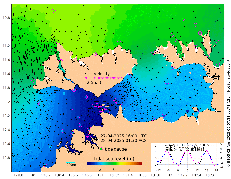 170cm/s -101T +4cm/s rms + 6cm/s 51T. Darwin_C1 52m 156cm/s -92T +4cm/s rms + 7cm/s -161T. Darwin_CW1 22m 82cm/s -106T +4cm/s rms + 8cm/s 61T. Darwin_CW2 34m 106cm/s -138T +3cm/s rms + 9cm/s 98T. Darwin_CW3 22m 156cm/s -90T +5cm/s rms + 7cm/s 88T. Darwin_C3 56m 87cm/s -116T +2cm/s rms + 9cm/s -126T. Darwin_CTbW 22m 23cm/s 117T +1cm/s rms + 1cm/s -47T. DARBGF 30m 35cm/s 140T +4cm/s rms + 3cm/s 80T. NRSDAR 19m 40cm Goodrich Bank -172cm Point Jenny -171cm Native Point -191cm Fish Reef -210cm Tapa Bay -45cm Point Fawcett (Offshore) -243cm Burge Point -179cm Munkunuwa -144cm Beagle A -237cm Parsons Bank -235cm Fenton Patches -248cm Hancox Shoal Area -253cm Nightcliff -279cm Darwin -235cm Charles Point Patches -240cm Glyde Point -237cm Chambers Bay -248cm Point Stuart -222cm Cape Hotham -223cm Christine Reef -270cm West Alligator Head -282cm East Field Island -198cm Two Hills Bay -202cm Camp Point -203cm Medina Inlet South -32cm South Barlow Point 5cm St. Asaph Bay 41cm Cape Van Dieman 29cm Snake Bay 30cm Cache Point -4cm Point Jahleel (Off) -79cm Cape Don -14cm Port Essington -12cm Smith Point - West -14cm NW Peacock Island 15cm North Of Jones Shoal 2cm Peacock Island -54cm Point David -19cm D'urville Point -60cm Copeland Island -47cm One Tree Point