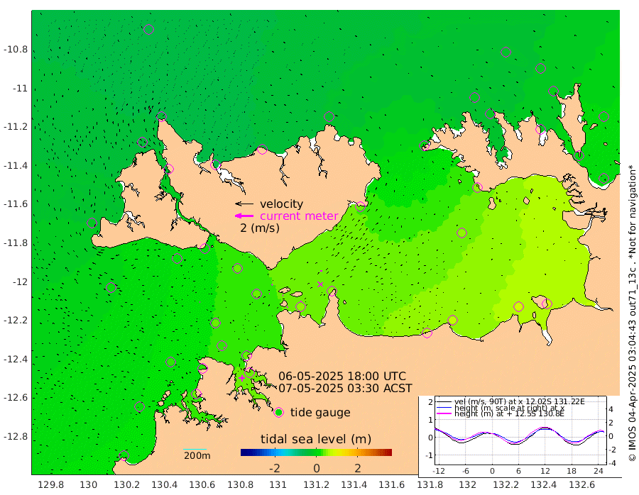 9cm/s -110T +4cm/s rms + 6cm/s 51T. Darwin_C1 52m 8cm/s -91T +4cm/s rms + 7cm/s -161T. Darwin_CW1 22m 4cm/s 81T +4cm/s rms + 8cm/s 61T. Darwin_CW2 34m 9cm/s -1T +3cm/s rms + 9cm/s 98T. Darwin_CW3 22m 8cm/s 91T +5cm/s rms + 7cm/s 88T. Darwin_C3 56m 8cm/s -118T +2cm/s rms + 9cm/s -126T. Darwin_CTbW 22m 5cm/s -78T +1cm/s rms + 1cm/s -47T. DARBGF 30m 4cm/s -58T +4cm/s rms + 3cm/s 80T. NRSDAR 19m -47cm Goodrich Bank 21cm Point Jenny 15cm Native Point 31cm Fish Reef 24cm Tapa Bay -13cm Point Fawcett (Offshore) 36cm Burge Point 17cm Munkunuwa 12cm Beagle A 34cm Parsons Bank 34cm Fenton Patches 38cm Hancox Shoal Area 37cm Nightcliff 38cm Darwin 26cm Charles Point Patches 46cm Glyde Point 72cm Chambers Bay 76cm Point Stuart 55cm Cape Hotham 55cm Christine Reef 84cm West Alligator Head 91cm East Field Island 52cm Two Hills Bay 43cm Camp Point 20cm Medina Inlet South -29cm South Barlow Point -34cm St. Asaph Bay -45cm Cape Van Dieman -48cm Snake Bay -36cm Cache Point -25cm Point Jahleel (Off) 4cm Cape Don -18cm Port Essington -18cm Smith Point - West -17cm NW Peacock Island -25cm North Of Jones Shoal -7cm Peacock Island 2cm Point David -14cm D'urville Point 8cm Copeland Island 0cm One Tree Point