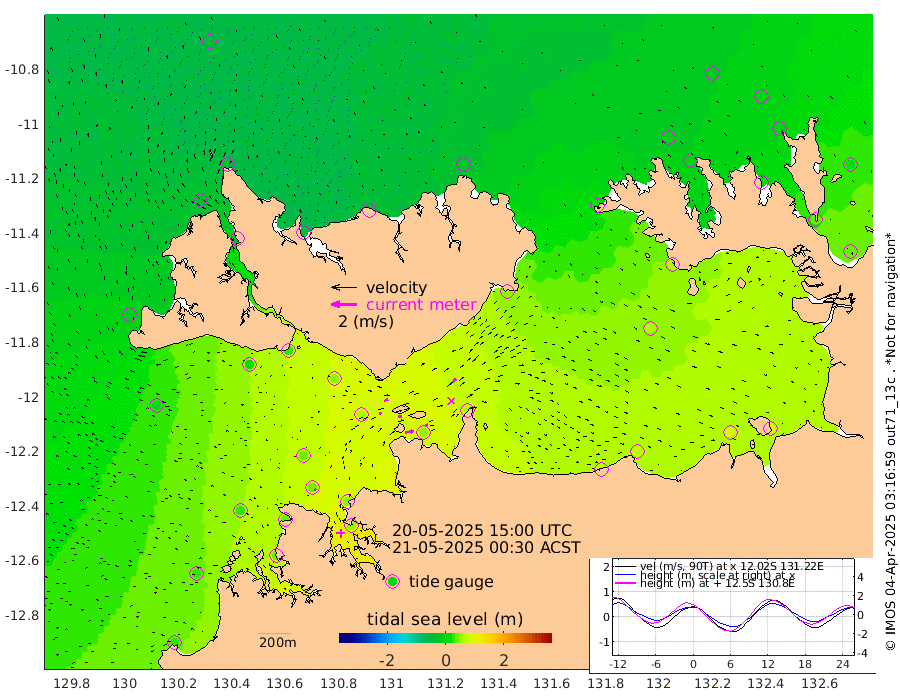 63cm/s 79T +4cm/s rms + 6cm/s 51T. Darwin_C1 52m 22cm/s 89T +4cm/s rms + 7cm/s -161T. Darwin_CW1 22m 20cm/s 69T +4cm/s rms + 8cm/s 61T. Darwin_CW2 34m 42cm/s 44T +3cm/s rms + 9cm/s 98T. Darwin_CW3 22m 27cm/s 89T +5cm/s rms + 7cm/s 88T. Darwin_C3 56m 34cm/s 64T +2cm/s rms + 9cm/s -126T. Darwin_CTbW 22m 9cm/s -82T +1cm/s rms + 1cm/s -47T. DARBGF 30m 14cm/s -46T +4cm/s rms + 3cm/s 80T. NRSDAR 19m -45cm Goodrich Bank 27cm Point Jenny 25cm Native Point 23cm Fish Reef 40cm Tapa Bay -20cm Point Fawcett (Offshore) 34cm Burge Point 22cm Munkunuwa 6cm Beagle A 50cm Parsons Bank 36cm Fenton Patches 62cm Hancox Shoal Area 55cm Nightcliff 51cm Darwin 35cm Charles Point Patches 55cm Glyde Point 79cm Chambers Bay 76cm Point Stuart 59cm Cape Hotham 66cm Christine Reef 83cm West Alligator Head 85cm East Field Island 57cm Two Hills Bay 51cm Camp Point 24cm Medina Inlet South -27cm South Barlow Point -38cm St. Asaph Bay -42cm Cape Van Dieman -41cm Snake Bay -37cm Cache Point -21cm Point Jahleel (Off) 12cm Cape Don -9cm Port Essington -5cm Smith Point - West -1cm NW Peacock Island -21cm North Of Jones Shoal -4cm Peacock Island 34cm Point David 5cm D'urville Point 40cm Copeland Island 22cm One Tree Point