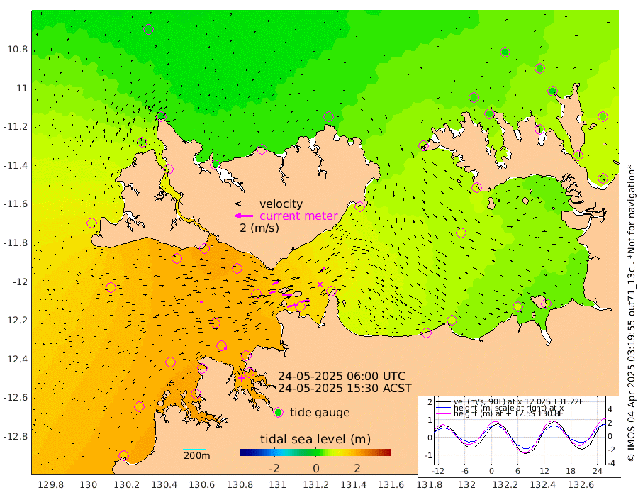 121cm/s 77T +4cm/s rms + 6cm/s 51T. Darwin_C1 52m 90cm/s 89T +4cm/s rms + 7cm/s -161T. Darwin_CW1 22m 76cm/s 74T +4cm/s rms + 8cm/s 61T. Darwin_CW2 34m 58cm/s 48T +3cm/s rms + 9cm/s 98T. Darwin_CW3 22m 109cm/s 89T +5cm/s rms + 7cm/s 88T. Darwin_C3 56m 70cm/s 64T +2cm/s rms + 9cm/s -126T. Darwin_CTbW 22m 32cm/s 84T +1cm/s rms + 1cm/s -47T. DARBGF 30m 29cm/s 110T +4cm/s rms + 3cm/s 80T. NRSDAR 19m 6cm Goodrich Bank 157cm Point Jenny 159cm Native Point 166cm Fish Reef 173cm Tapa Bay 80cm Point Fawcett (Offshore) 192cm Burge Point 167cm Munkunuwa 143cm Beagle A 183cm Parsons Bank 186cm Fenton Patches 171cm Hancox Shoal Area 187cm Nightcliff 194cm Darwin 173cm Charles Point Patches 136cm Glyde Point 86cm Chambers Bay 82cm Point Stuart 109cm Cape Hotham 82cm Christine Reef 84cm West Alligator Head 66cm East Field Island 82cm Two Hills Bay 84cm Camp Point 169cm Medina Inlet South 72cm South Barlow Point 43cm St. Asaph Bay 12cm Cape Van Dieman 20cm Snake Bay 12cm Cache Point 25cm Point Jahleel (Off) 59cm Cape Don 30cm Port Essington 30cm Smith Point - West 28cm NW Peacock Island 9cm North Of Jones Shoal 5cm Peacock Island 46cm Point David 34cm D'urville Point 46cm Copeland Island 40cm One Tree Point