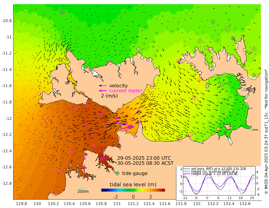 267cm/s 78T +4cm/s rms + 6cm/s 51T. Darwin_C1 52m 195cm/s 93T +4cm/s rms + 7cm/s -161T. Darwin_CW1 22m 144cm/s 72T +4cm/s rms + 8cm/s 61T. Darwin_CW2 34m 137cm/s 47T +3cm/s rms + 9cm/s 98T. Darwin_CW3 22m 217cm/s 89T +5cm/s rms + 7cm/s 88T. Darwin_C3 56m 137cm/s 66T +2cm/s rms + 9cm/s -126T. Darwin_CTbW 22m 47cm/s 79T +1cm/s rms + 1cm/s -47T. DARBGF 30m 36cm/s 104T +4cm/s rms + 3cm/s 80T. NRSDAR 19m 17cm Goodrich Bank 246cm Point Jenny 244cm Native Point 262cm Fish Reef 273cm Tapa Bay 143cm Point Fawcett (Offshore) 292cm Burge Point 268cm Munkunuwa 214cm Beagle A 282cm Parsons Bank 277cm Fenton Patches 273cm Hancox Shoal Area 293cm Nightcliff 307cm Darwin 279cm Charles Point Patches 215cm Glyde Point 158cm Chambers Bay 152cm Point Stuart 181cm Cape Hotham 151cm Christine Reef 164cm West Alligator Head 137cm East Field Island 146cm Two Hills Bay 136cm Camp Point 272cm Medina Inlet South 115cm South Barlow Point 82cm St. Asaph Bay 22cm Cape Van Dieman 29cm Snake Bay 28cm Cache Point 46cm Point Jahleel (Off) 94cm Cape Don 44cm Port Essington 48cm Smith Point - West 36cm NW Peacock Island 25cm North Of Jones Shoal 9cm Peacock Island 40cm Point David 42cm D'urville Point 40cm Copeland Island 43cm One Tree Point