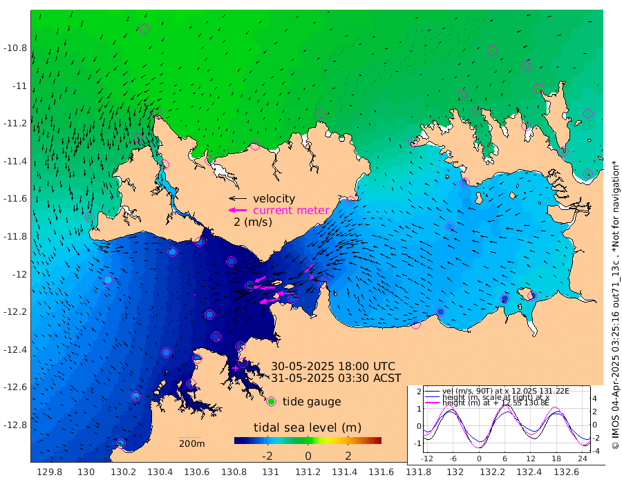 231cm/s -101T +4cm/s rms + 6cm/s 51T. Darwin_C1 52m 176cm/s -91T +4cm/s rms + 7cm/s -161T. Darwin_CW1 22m 91cm/s -105T +4cm/s rms + 8cm/s 61T. Darwin_CW2 34m 126cm/s -136T +3cm/s rms + 9cm/s 98T. Darwin_CW3 22m 161cm/s -90T +5cm/s rms + 7cm/s 88T. Darwin_C3 56m 126cm/s -115T +2cm/s rms + 9cm/s -126T. Darwin_CTbW 22m 9cm/s -169T +1cm/s rms + 1cm/s -47T. DARBGF 30m 16cm/s 163T +4cm/s rms + 3cm/s 80T. NRSDAR 19m -3cm Goodrich Bank -200cm Point Jenny -197cm Native Point -219cm Fish Reef -231cm Tapa Bay -100cm Point Fawcett (Offshore) -257cm Burge Point -204cm Munkunuwa -163cm Beagle A -255cm Parsons Bank -235cm Fenton Patches -256cm Hancox Shoal Area -256cm Nightcliff -292cm Darwin -260cm Charles Point Patches -241cm Glyde Point -226cm Chambers Bay -237cm Point Stuart -223cm Cape Hotham -210cm Christine Reef -254cm West Alligator Head -252cm East Field Island -205cm Two Hills Bay -197cm Camp Point -231cm Medina Inlet South -76cm South Barlow Point -42cm St. Asaph Bay -6cm Cape Van Dieman -18cm Snake Bay -19cm Cache Point -43cm Point Jahleel (Off) -117cm Cape Don -61cm Port Essington -55cm Smith Point - West -56cm NW Peacock Island -36cm North Of Jones Shoal -15cm Peacock Island -94cm Point David -62cm D'urville Point -96cm Copeland Island -93cm One Tree Point