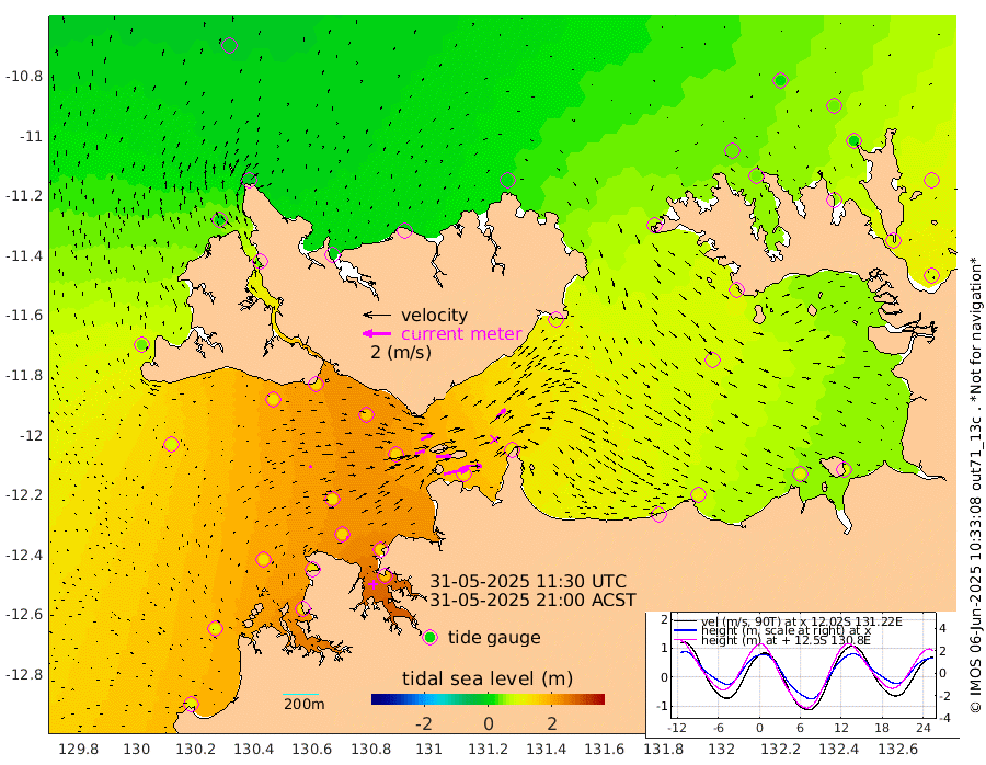 179cm/s 78T +4cm/s rms + 6cm/s 51T. Darwin_C1 52m 116cm/s 91T +4cm/s rms + 7cm/s -161T. Darwin_CW1 22m 70cm/s 74T +4cm/s rms + 8cm/s 61T. Darwin_CW2 34m 102cm/s 44T +3cm/s rms + 9cm/s 98T. Darwin_CW3 22m 111cm/s 89T +5cm/s rms + 7cm/s 88T. Darwin_C3 56m 85cm/s 65T +2cm/s rms + 9cm/s -126T. Darwin_CTbW 22m 16cm/s 78T +1cm/s rms + 1cm/s -47T. DARBGF 30m 13cm/s 87T +4cm/s rms + 3cm/s 80T. NRSDAR 19m -21cm Goodrich Bank 109cm Point Jenny 106cm Native Point 128cm Fish Reef 133cm Tapa Bay 45cm Point Fawcett (Offshore) 143cm Burge Point 127cm Munkunuwa 79cm Beagle A 164cm Parsons Bank 129cm Fenton Patches 156cm Hancox Shoal Area 149cm Nightcliff 177cm Darwin 154cm Charles Point Patches 129cm Glyde Point 98cm Chambers Bay 105cm Point Stuart 116cm Cape Hotham 83cm Christine Reef 108cm West Alligator Head 92cm East Field Island 98cm Two Hills Bay 86cm Camp Point 136cm Medina Inlet South 38cm South Barlow Point 6cm St. Asaph Bay -15cm Cape Van Dieman -4cm Snake Bay -10cm Cache Point 10cm Point Jahleel (Off) 62cm Cape Don 38cm Port Essington 35cm Smith Point - West 38cm NW Peacock Island 16cm North Of Jones Shoal 10cm Peacock Island 80cm Point David 47cm D'urville Point 85cm Copeland Island 74cm One Tree Point