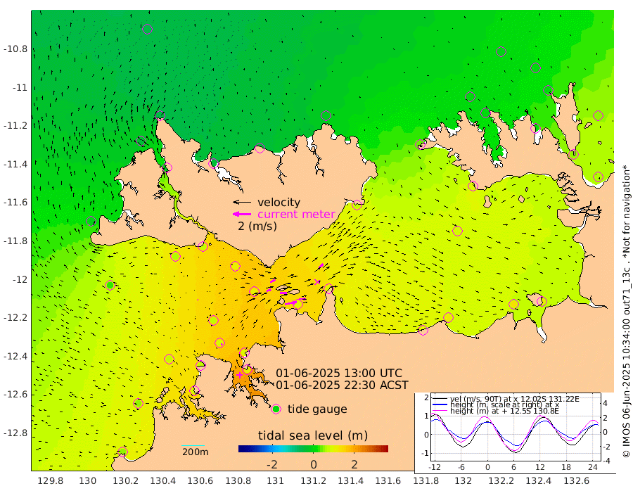 129cm/s 79T +4cm/s rms + 6cm/s 51T. Darwin_C1 52m 75cm/s 93T +4cm/s rms + 7cm/s -161T. Darwin_CW1 22m 48cm/s 71T +4cm/s rms + 8cm/s 61T. Darwin_CW2 34m 79cm/s 44T +3cm/s rms + 9cm/s 98T. Darwin_CW3 22m 77cm/s 90T +5cm/s rms + 7cm/s 88T. Darwin_C3 56m 61cm/s 65T +2cm/s rms + 9cm/s -126T. Darwin_CTbW 22m 7cm/s -60T +1cm/s rms + 1cm/s -47T. DARBGF 30m 16cm/s -39T +4cm/s rms + 3cm/s 80T. NRSDAR 19m -51cm Goodrich Bank 53cm Point Jenny 48cm Native Point 69cm Fish Reef 72cm Tapa Bay -2cm Point Fawcett (Offshore) 81cm Burge Point 64cm Munkunuwa 24cm Beagle A 103cm Parsons Bank 69cm Fenton Patches 103cm Hancox Shoal Area 92cm Nightcliff 112cm Darwin 88cm Charles Point Patches 98cm Glyde Point 107cm Chambers Bay 118cm Point Stuart 100cm Cape Hotham 87cm Christine Reef 127cm West Alligator Head 123cm East Field Island 95cm Two Hills Bay 77cm Camp Point 73cm Medina Inlet South -12cm South Barlow Point -34cm St. Asaph Bay -47cm Cape Van Dieman -39cm Snake Bay -38cm Cache Point -17cm Point Jahleel (Off) 37cm Cape Don 8cm Port Essington 6cm Smith Point - West 10cm NW Peacock Island -10cm North Of Jones Shoal 1cm Peacock Island 53cm Point David 18cm D'urville Point 60cm Copeland Island 48cm One Tree Point